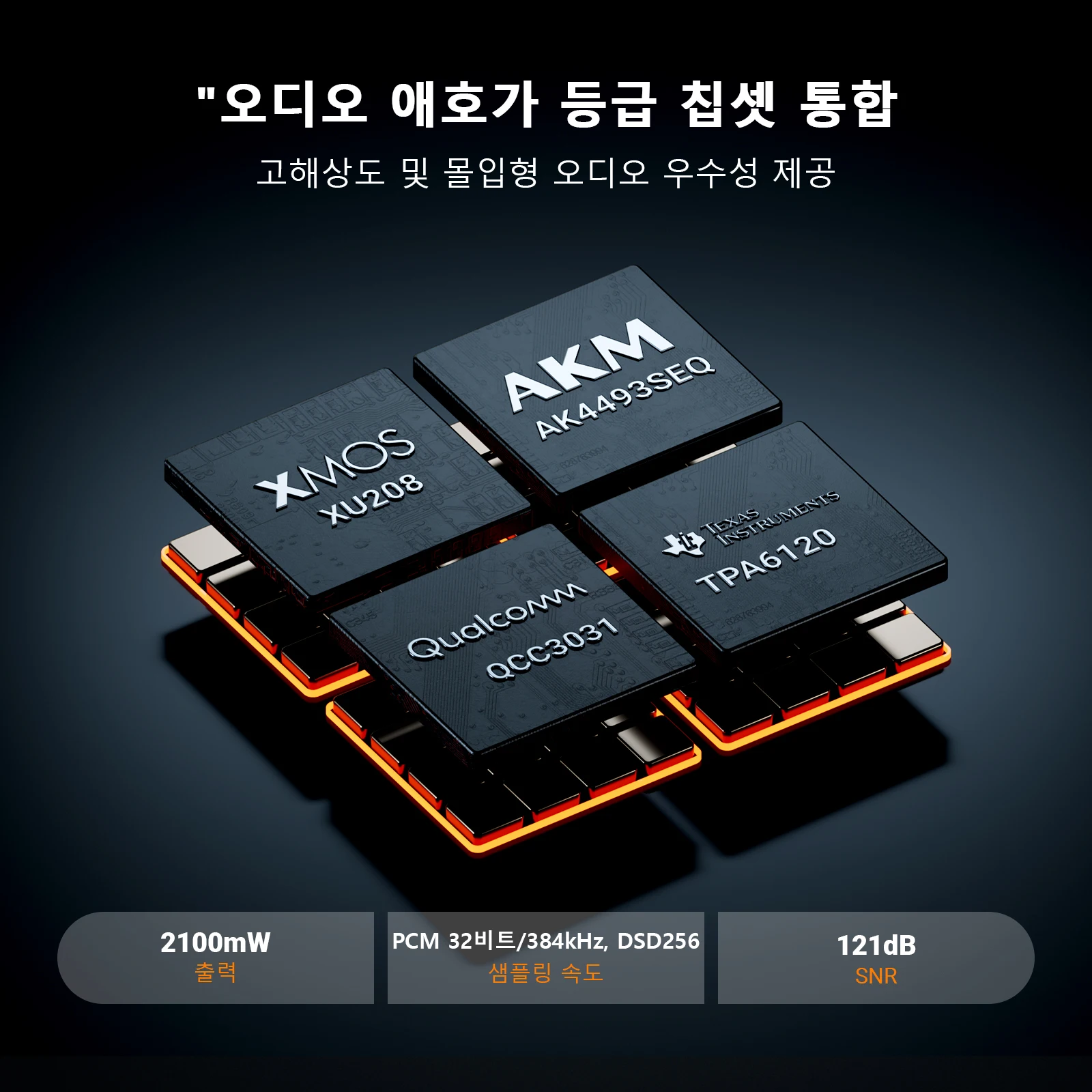 [ HiFi 사운드 ]? 장착되어 AKM4493ESQ DAC 칩 K7은 고음질 오디오를 제공 PCM 384kHz/32비트 및 DSD256오디오 를 위한 풍부하고 섬세한 사운드를 지원