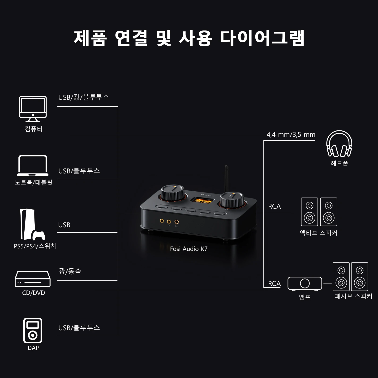[원활한 멀티 플랫폼 조화]?K7과의 원활한 통합을 경험해 보세요 프로 스위치 PC MAC 태블릿 TV 및 고출력 밸런스 폰 출력과 라인 출력을 통해 음악 게임 업무 엔터테인먼트 등 다양한 요구를 손쉽게 충족 K7의 컴팩트한 디자 풍부한 기능으로 뛰어난 오디오 및 게임 경험을 즐겨보세요