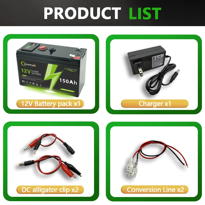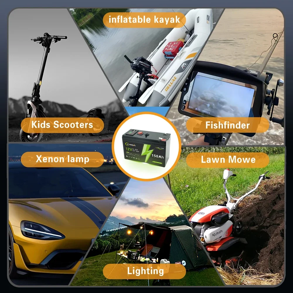 다양한 응용 분야 당사의 12v 150Ah 충전식 배터리는 전동 휠 소형 UPS RV 확성기 어군탐지기 주택 경보 비상 조명 정전 태양광 시스템의 납산 배터리를 대체 있는 환상적인 제품입니다 휠체어 야외 캠핑 트 모터 가정용 전원 공급 장치