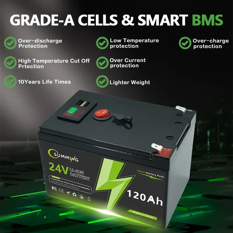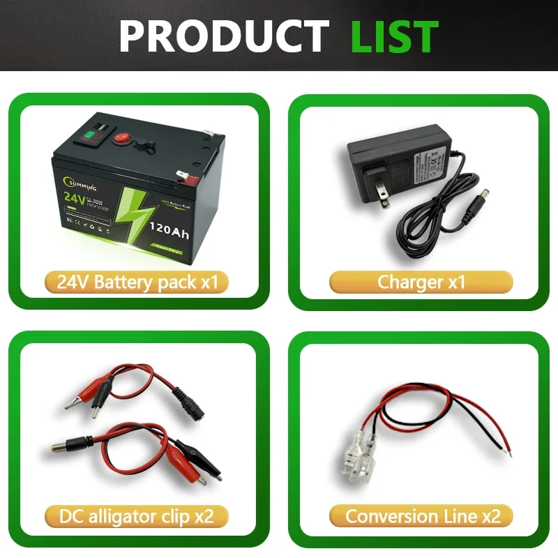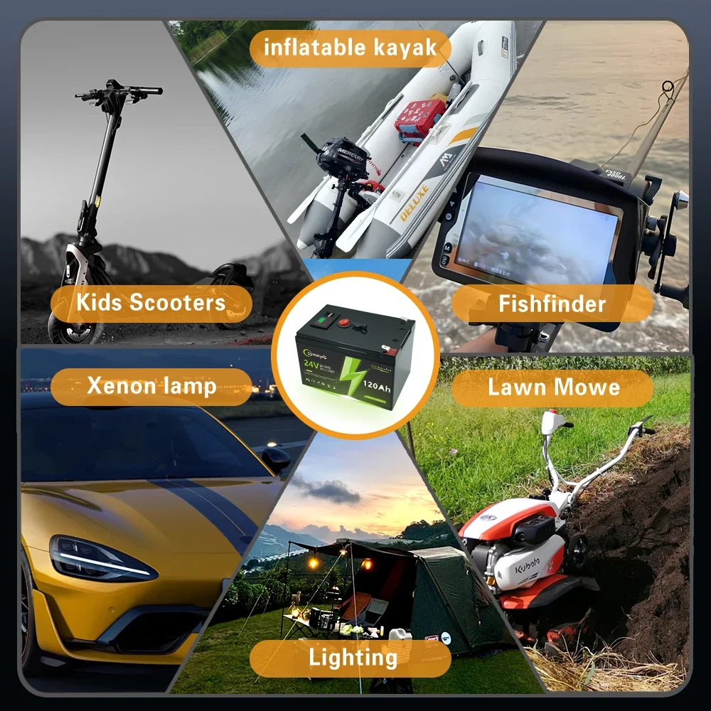 다양한 응용 분야 당사의 24v 120Ah 충전식 배터리는 전동 휠 소형 UPS RV 확성기 어군탐지기 주택 경보 비상 조명 정전 태양광 시스템의 납산 배터리를 대체 있는 환상적인 제품입니다 휠체어 야외 캠핑 트 모터 가정용 전원 공급 장치