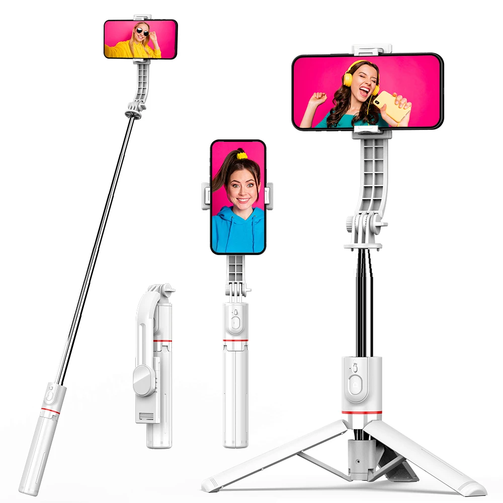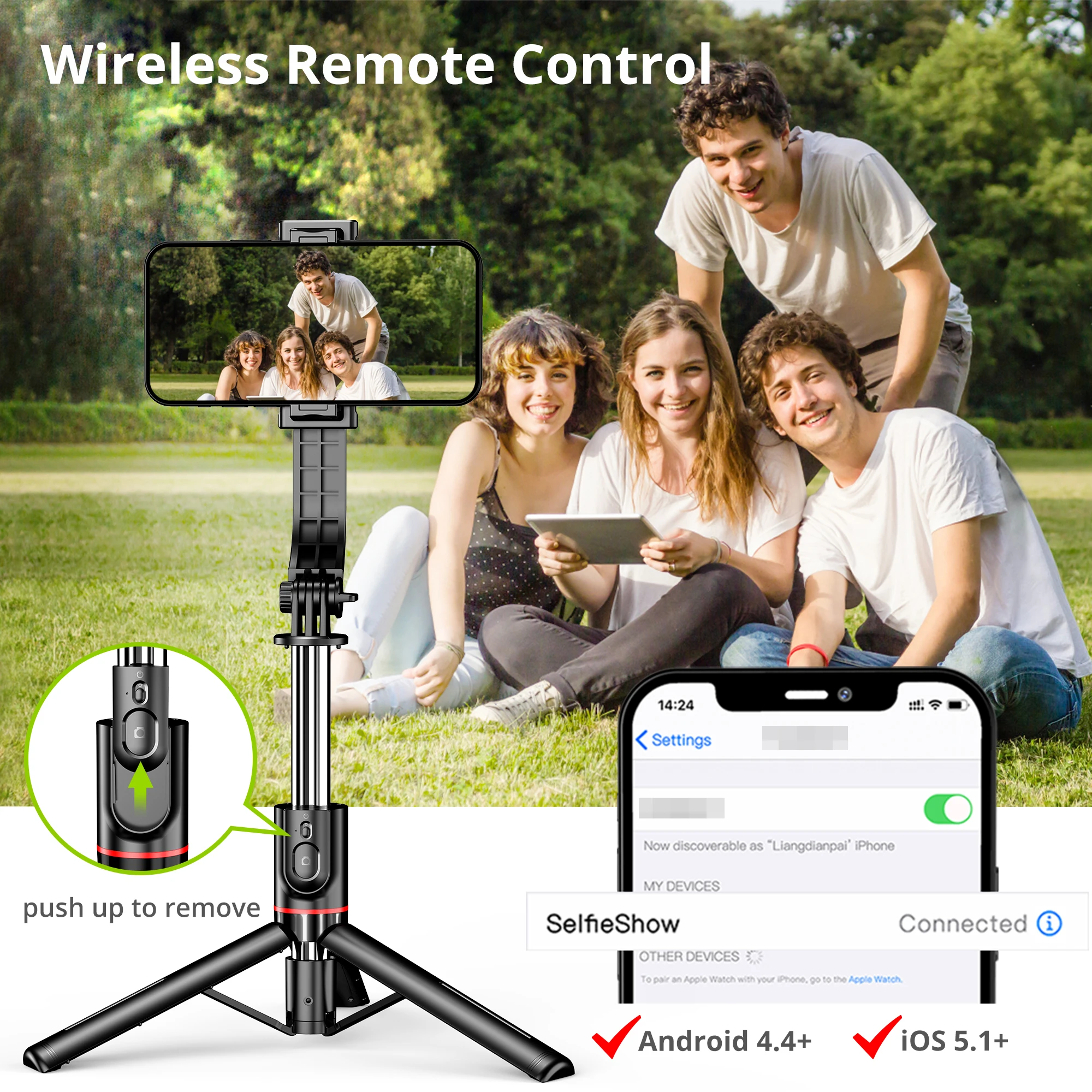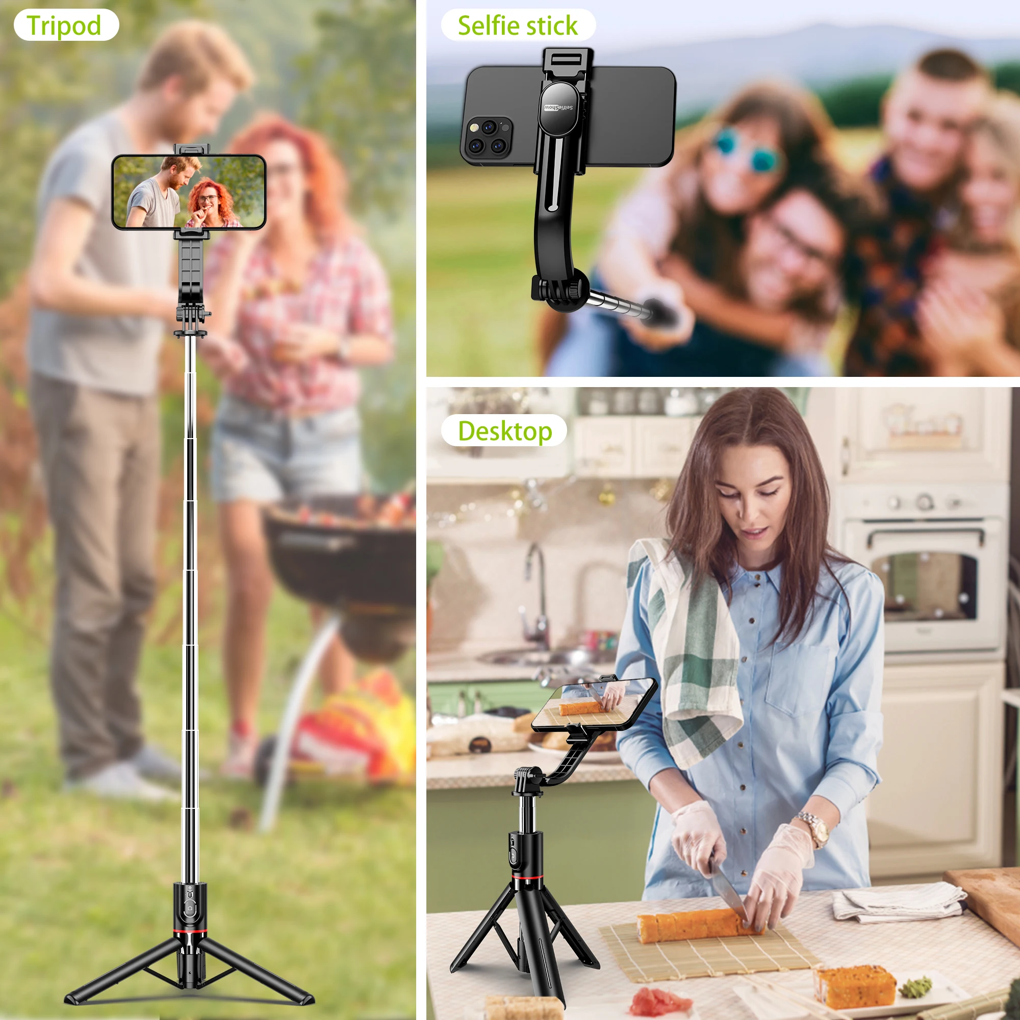 ? 셀카봉 삼각대 및 휴대폰 삼각대 스탠드 년 새롭게 업그레이드된 셀카봉 삼각대는 휴대용 셀카봉과 독립형 삼각대로 모두 사용 인체공학적 손잡이로 인해 휴대폰 스틱을 편안하게 잡을 수 셀카봉 모드와 삼각대 스탠드 모드 사이를 자유롭게 전환하세요 삼각대는 영상 촬영 단체 사진 브이로그 모험 셀카 등 모든 상황에 적용 가능