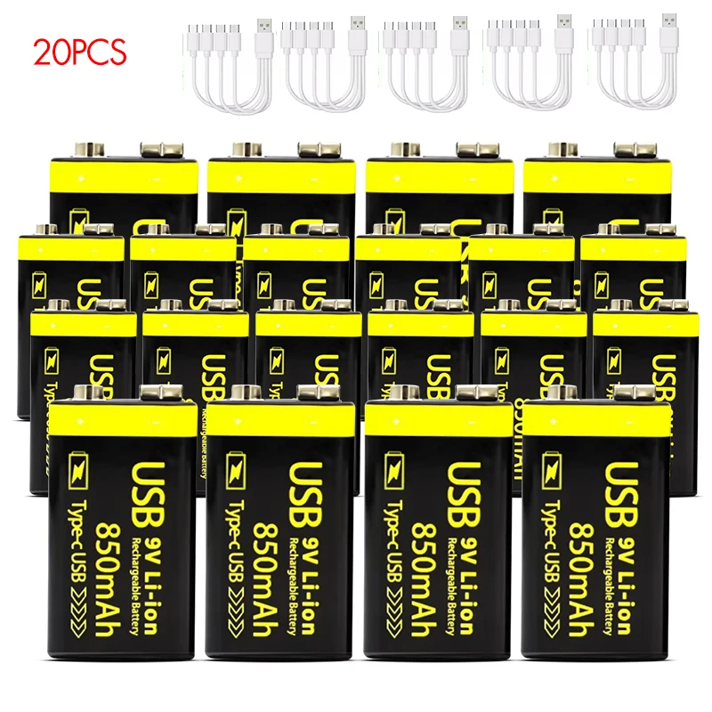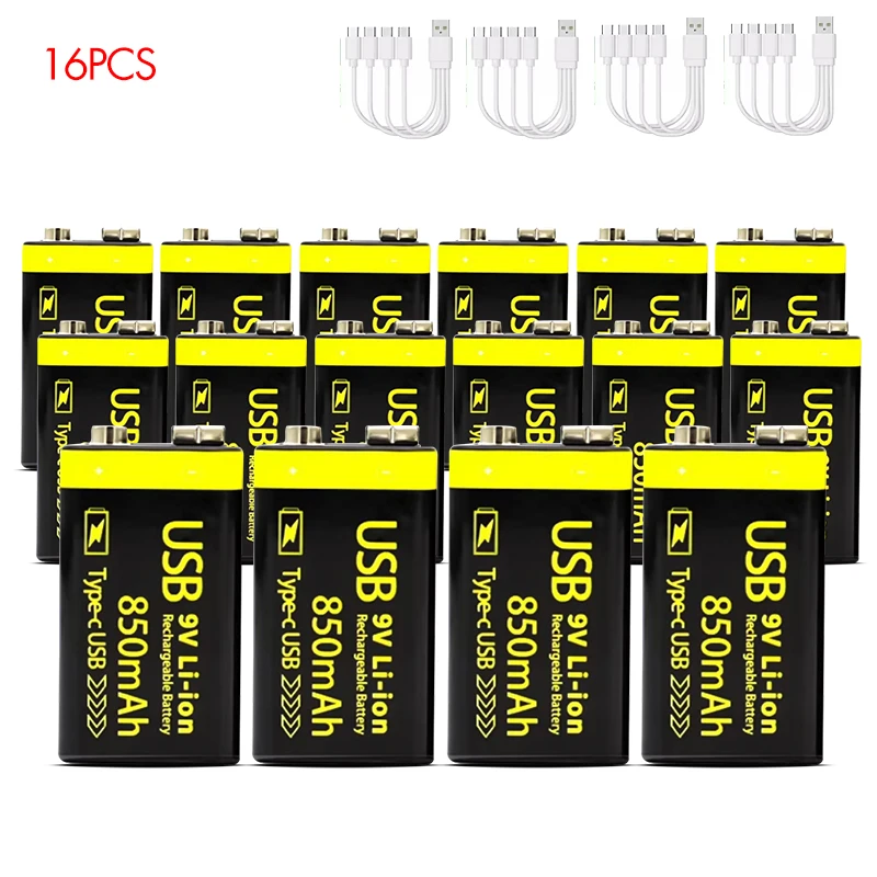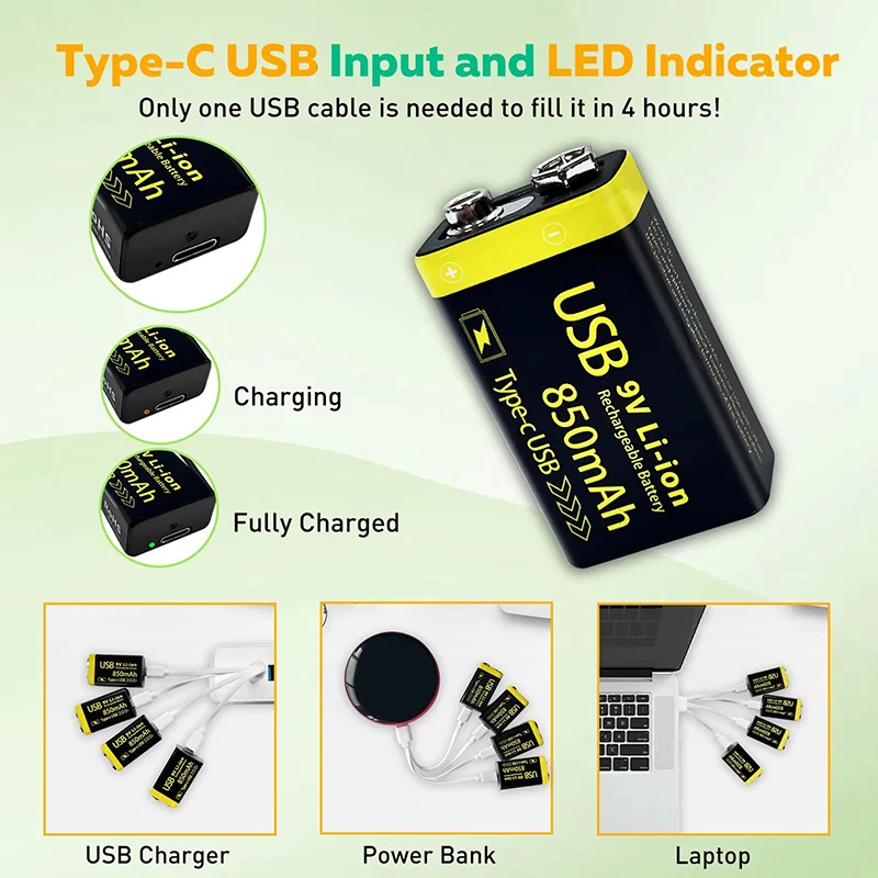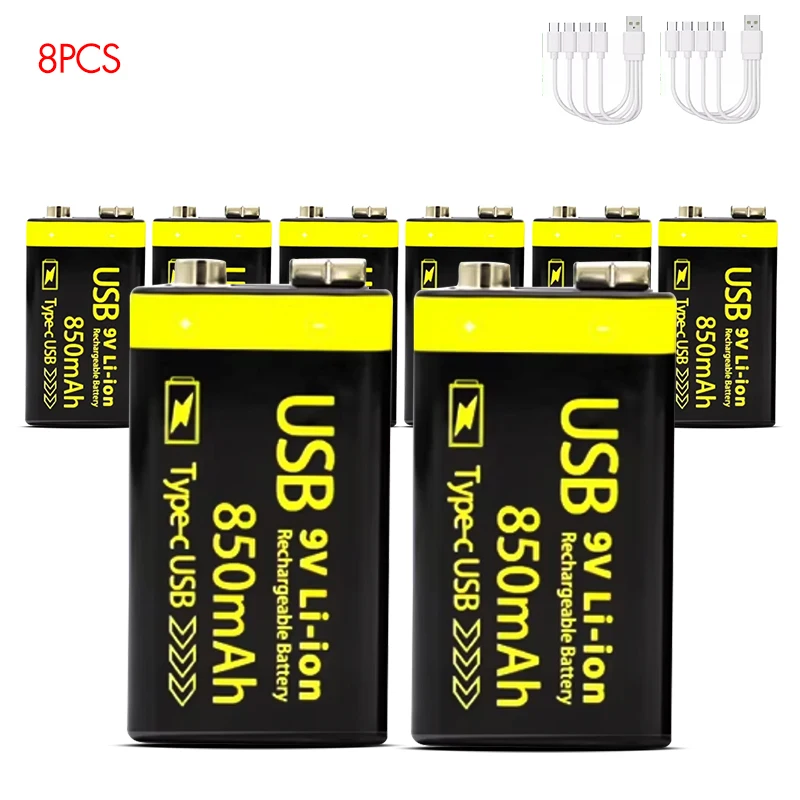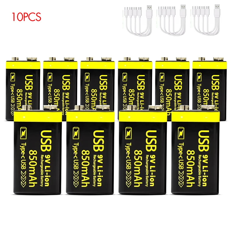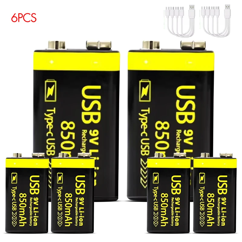 MATOV USB 9V 충전식 배터리 850mAh Type C 충전식 6F22 9V 이온 배터리 RC 헬리콥터 모델 멀티 미터