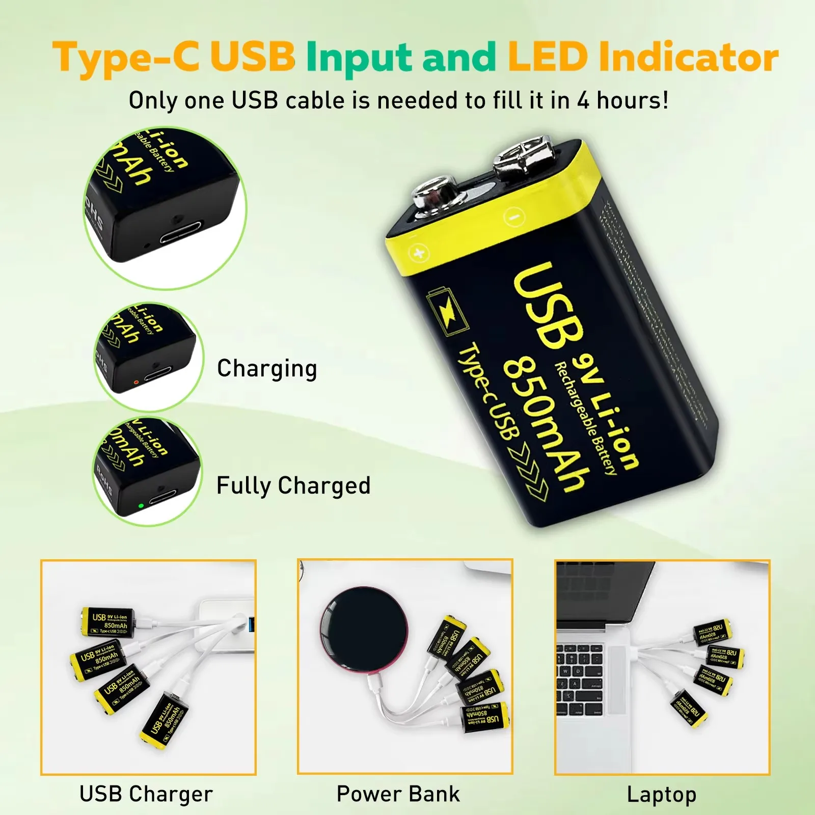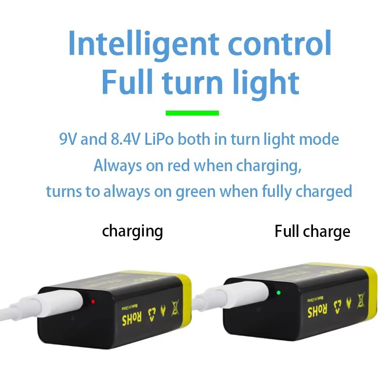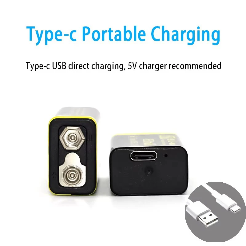 참고 MATOV USB 9V 배터리는 Type C 인터페이스를 통해서만 충전 9V 충전기를 사용하여 배터리를 충전하지 마십시오