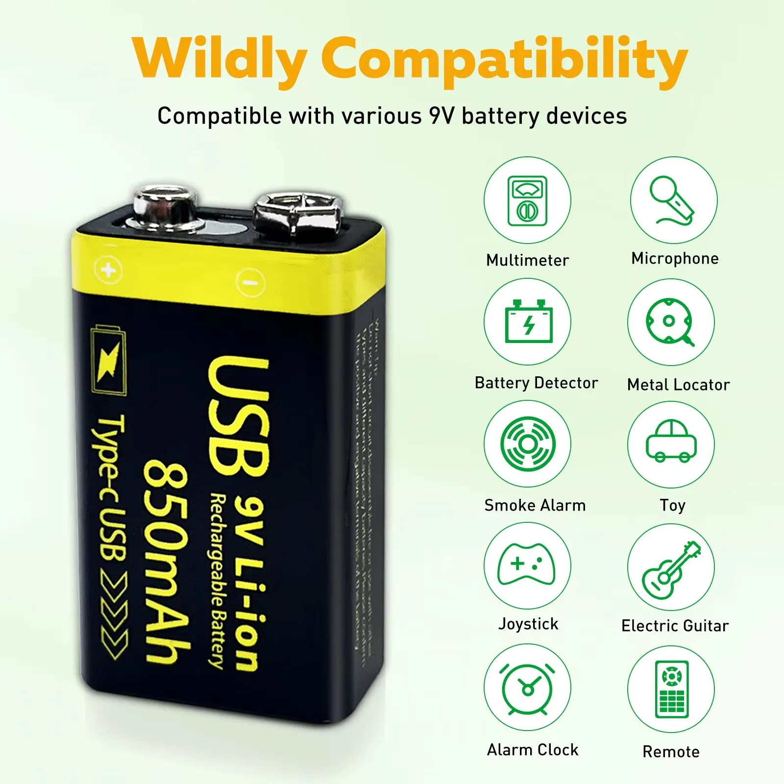 | 9v rechargeable battery | for Multimeter/Microphone/Smoke Alarm/Electric Guitar/Toy |