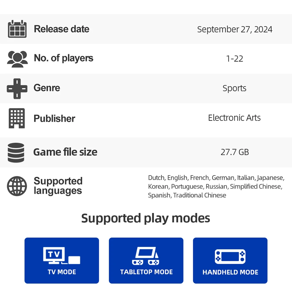 | 지원되는 플레이 모드 | 탁상 모드 |