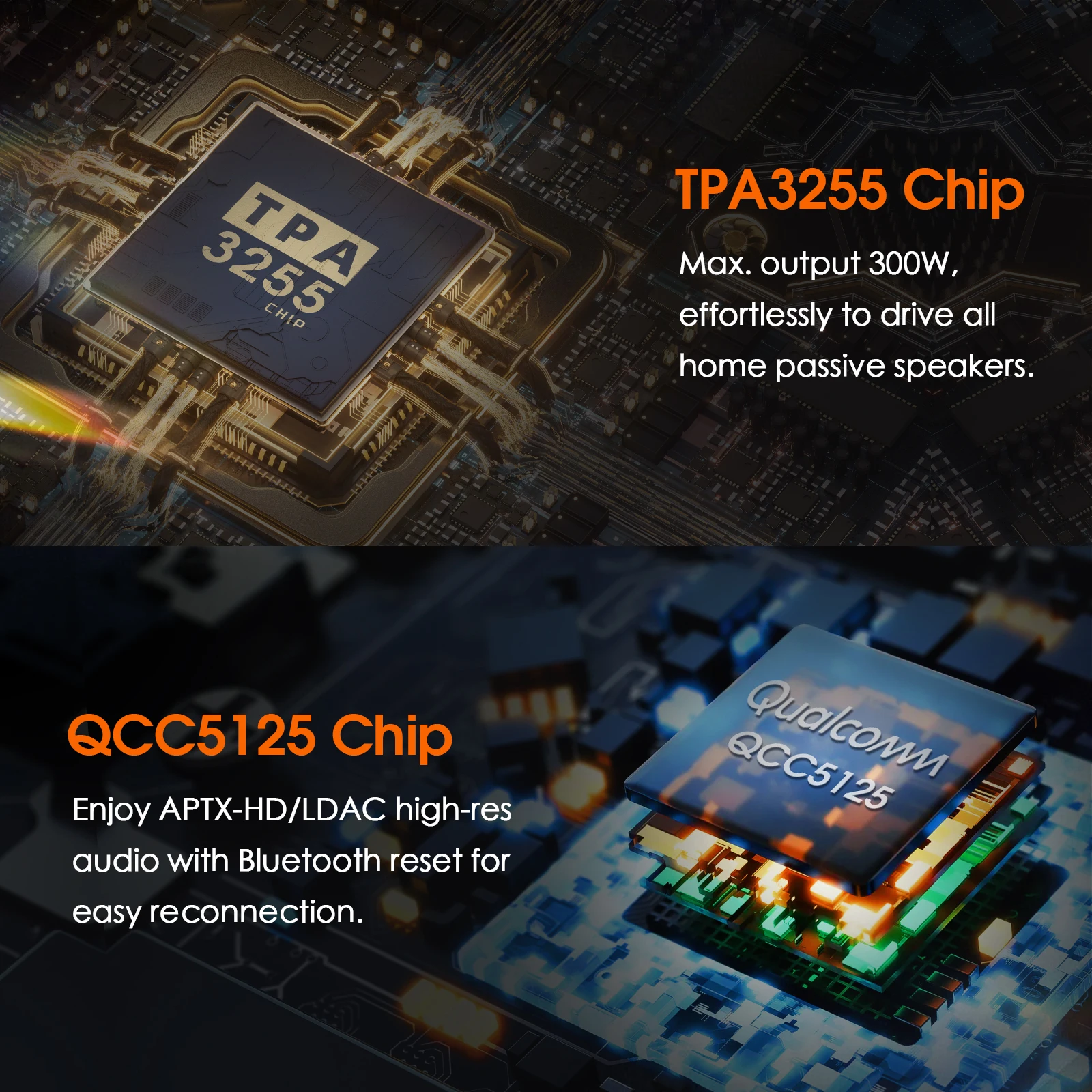 T6 는 Douk o가 디자인한 컴팩트한 진공관 로 멋진 디자 뛰어난 성능을 결합했습니다 JAN5725 진공관과 TPA3255 칩의 조합을 채택한 각 채널의 최대 300W 전력 출력으로 4 8Ω 스피커를 쉽게 구동 있어 인상적인 음질을 제공 Bluetooth 2 스테레오 RCA 그룹 및 3 5mm AUX 입력 스피커 잭 출력 외에 프리 출력을 통해 다중 채널 시스템을 쉽게 구축 일반적인 고음 및 저음 제어 외에도 20Hz까지의 초저음이 추가되어 충격적인 저음 효과를 얻을 수 시원한 어두운 VU 미터 가 듀얼 패널과 오디오 신호 변화에 따라 실시간으로 스윙하는 와 함께 사용되어 청각적 즐거움과 시각적 즐거움을 모두 얻을 수