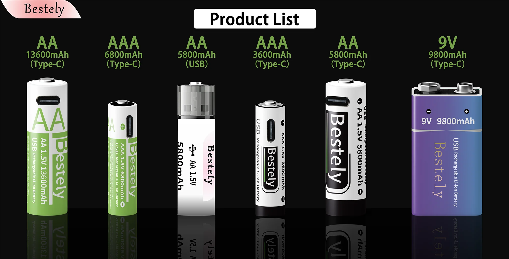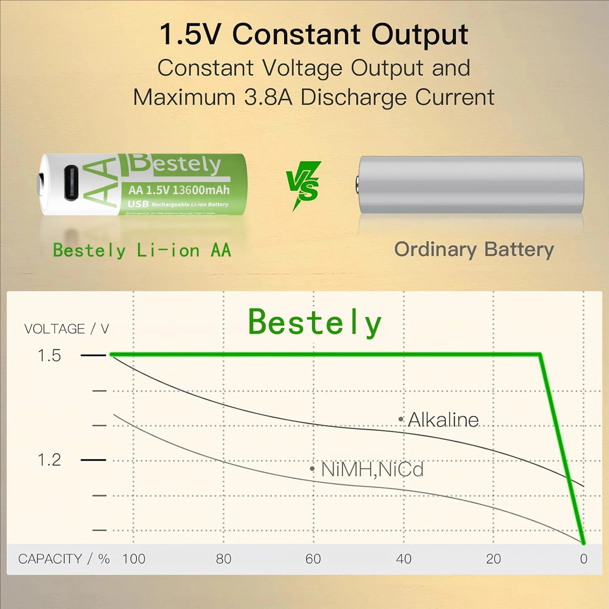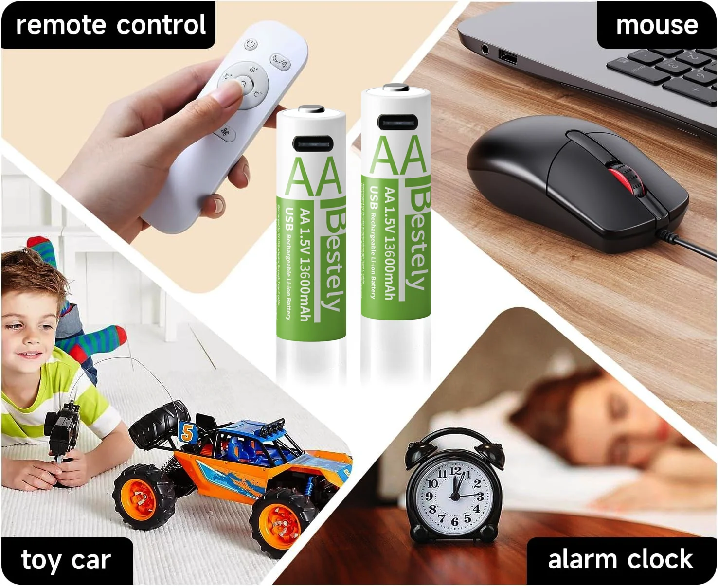 강력한 13600mAh AA 및 6800mAh AAA 배터리 세트가 장착되어 장치에 오래 지속되는 전력을