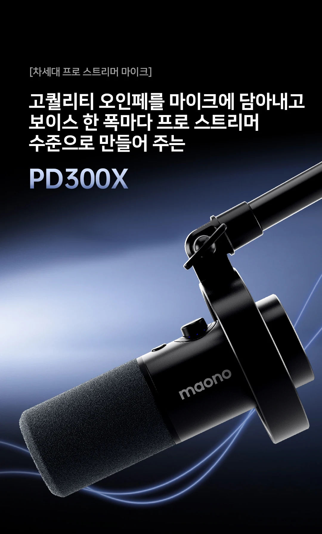획기적인 오디오 성능 MAONO PD300X 다이나믹 마이크는 기존 CD 표준을 능가하는 초고화질 192kHz/24비트 샘플링 기능을 갖추고 이를 통해 더 높은 주파수의 사운드 세부 사항을 포착하고 뛰어난 오디오 을 스트리밍 오디오 제작 또는 팟 트 에 사용하든 이 마이크는 음성을 명확하고 미묘하며 생생하게 만들어 오디오 제작을 더욱 매력적으로 만들어줍니다