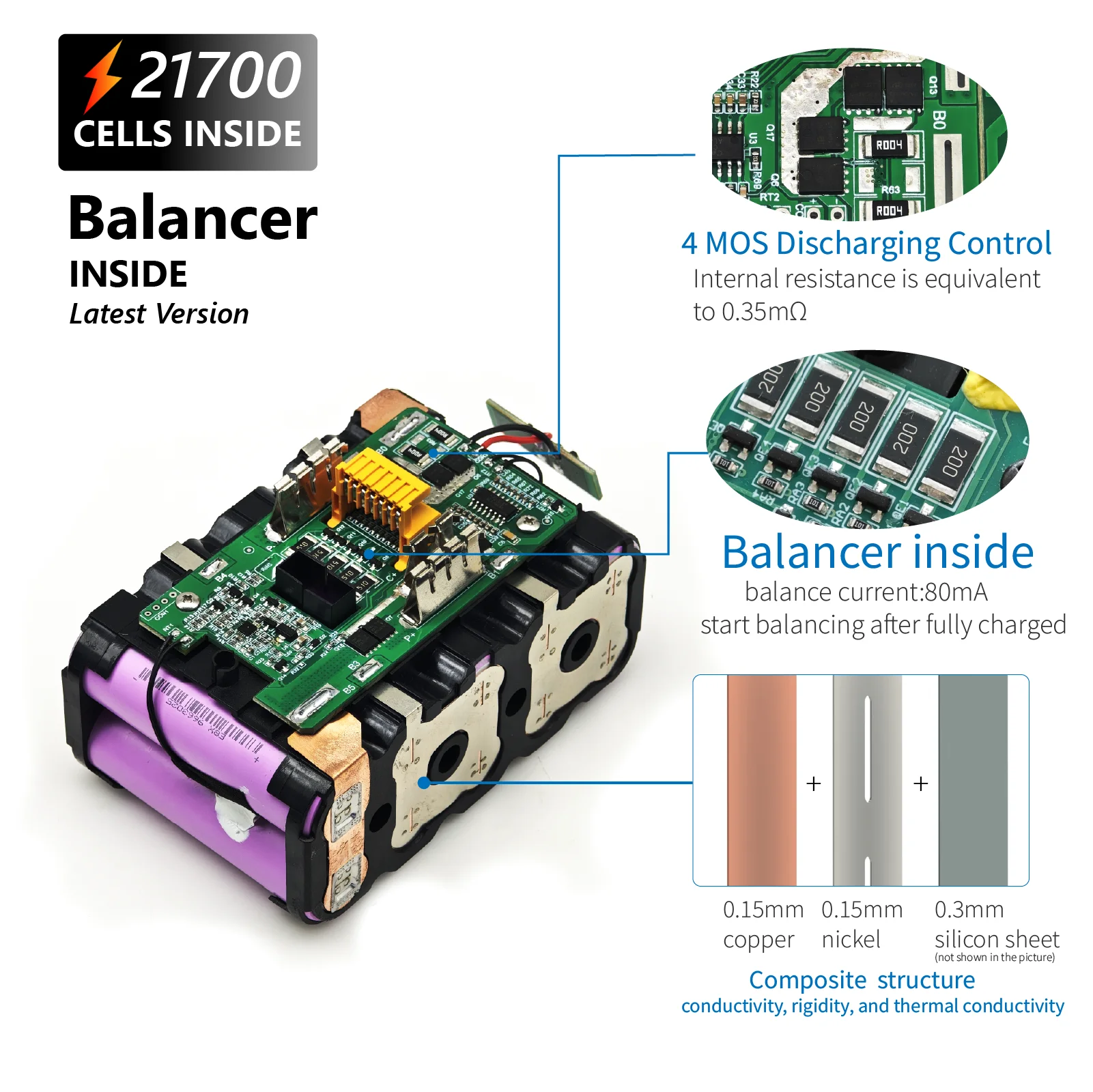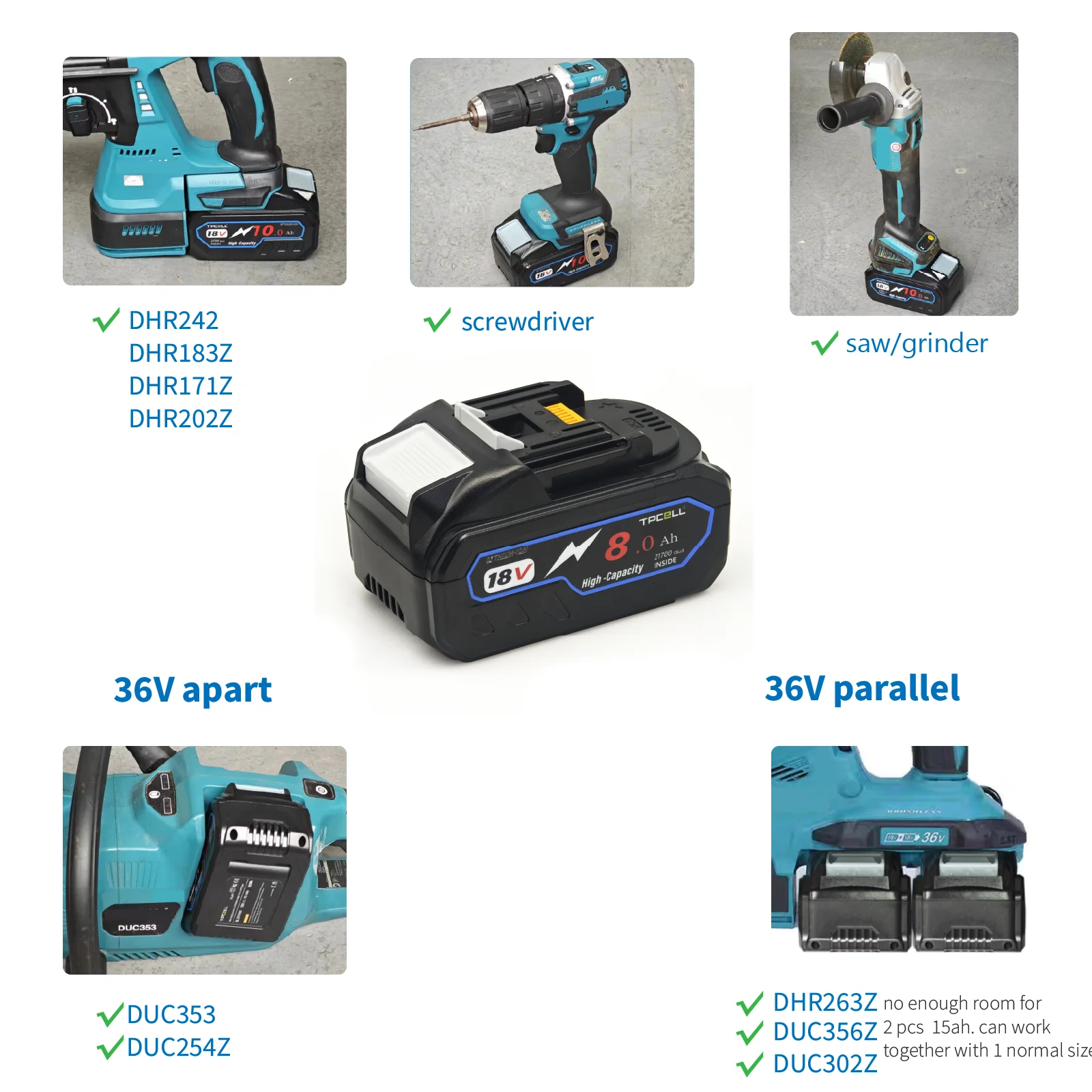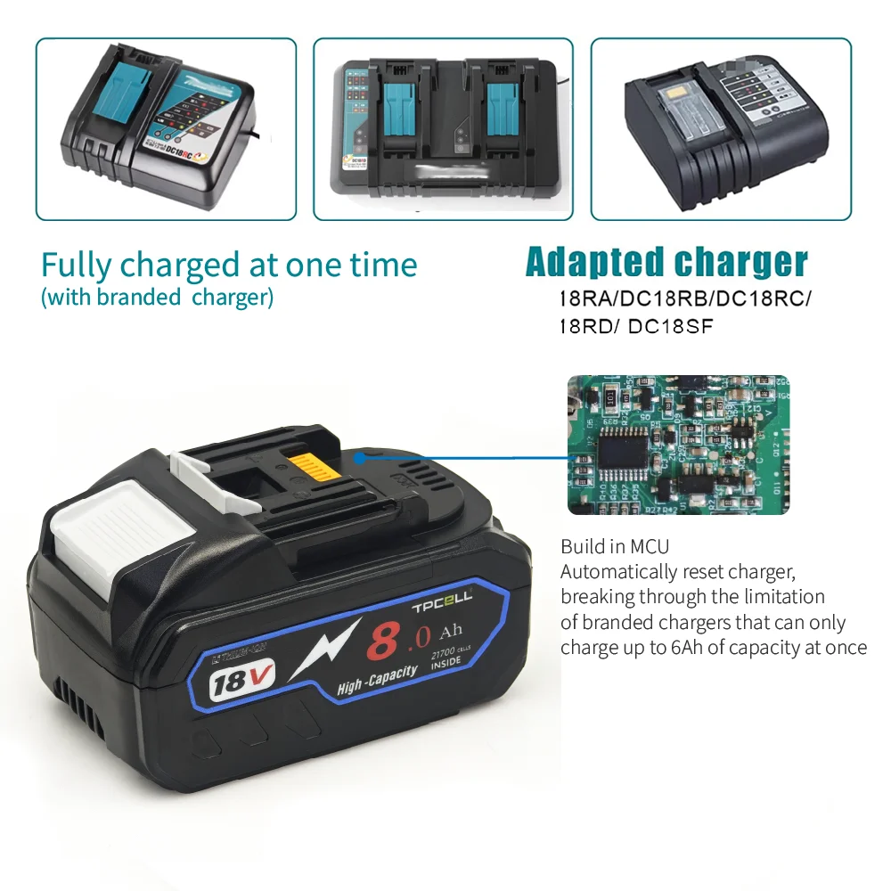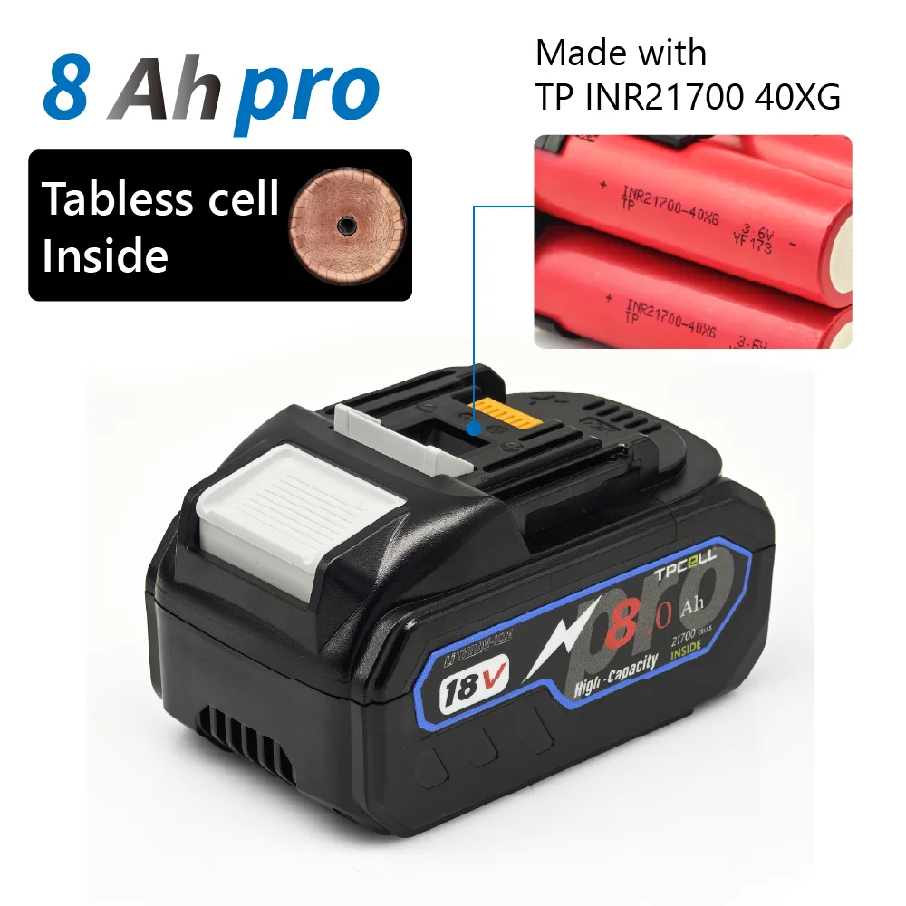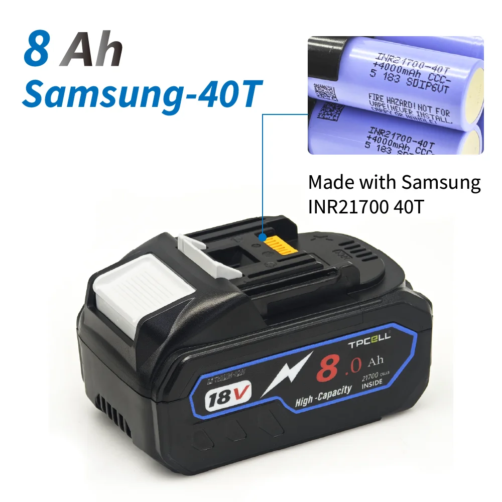 MKT 18V 8Ah/10Ah 충전식 전동 공구용 21700 배터리 18V MKT(LED 이온 )