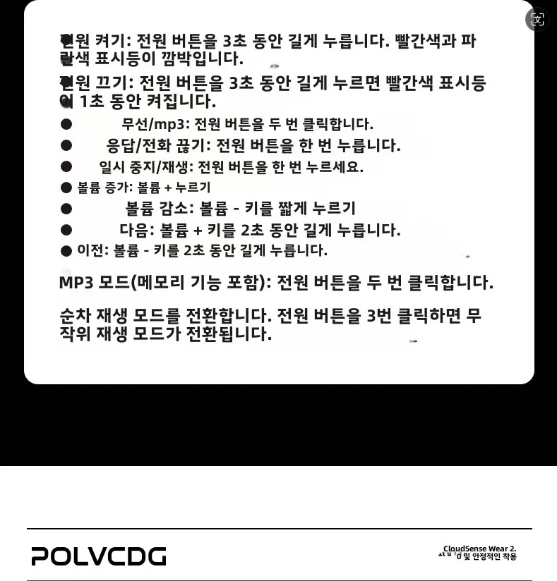 MP3 모드(메모리 기능 ) 전원 버튼을 두 번 클릭
