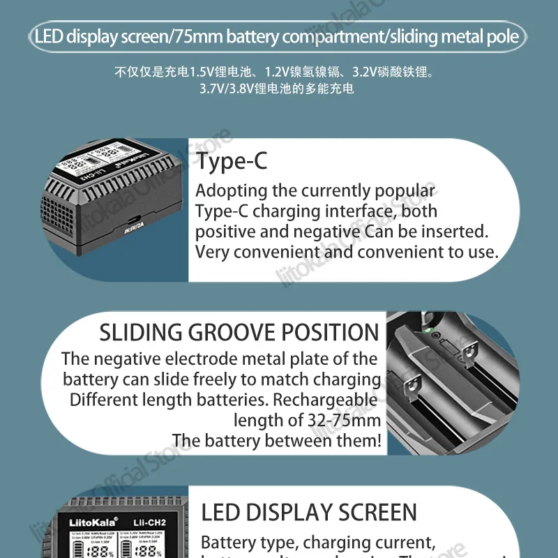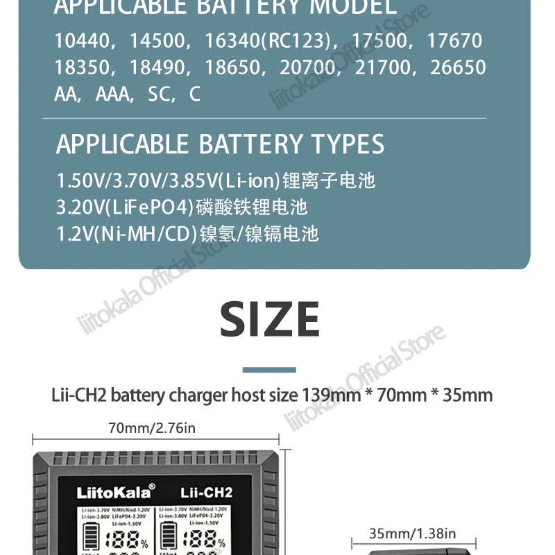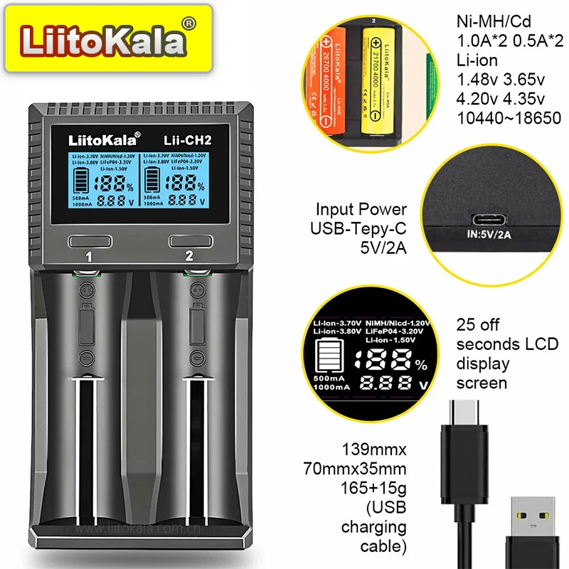 oK Lii CH4 CH2 3 7V 3 85V 이온 18650 1 2V 1 5V Ni MH AA AAA 3 2V/3 65V LiFePO4 충전식 스마트 충전기