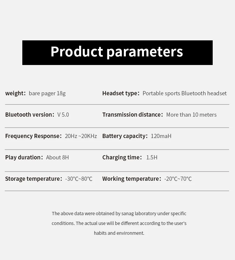 170mAh 배터리 8 시간 시간 10 일 대기
