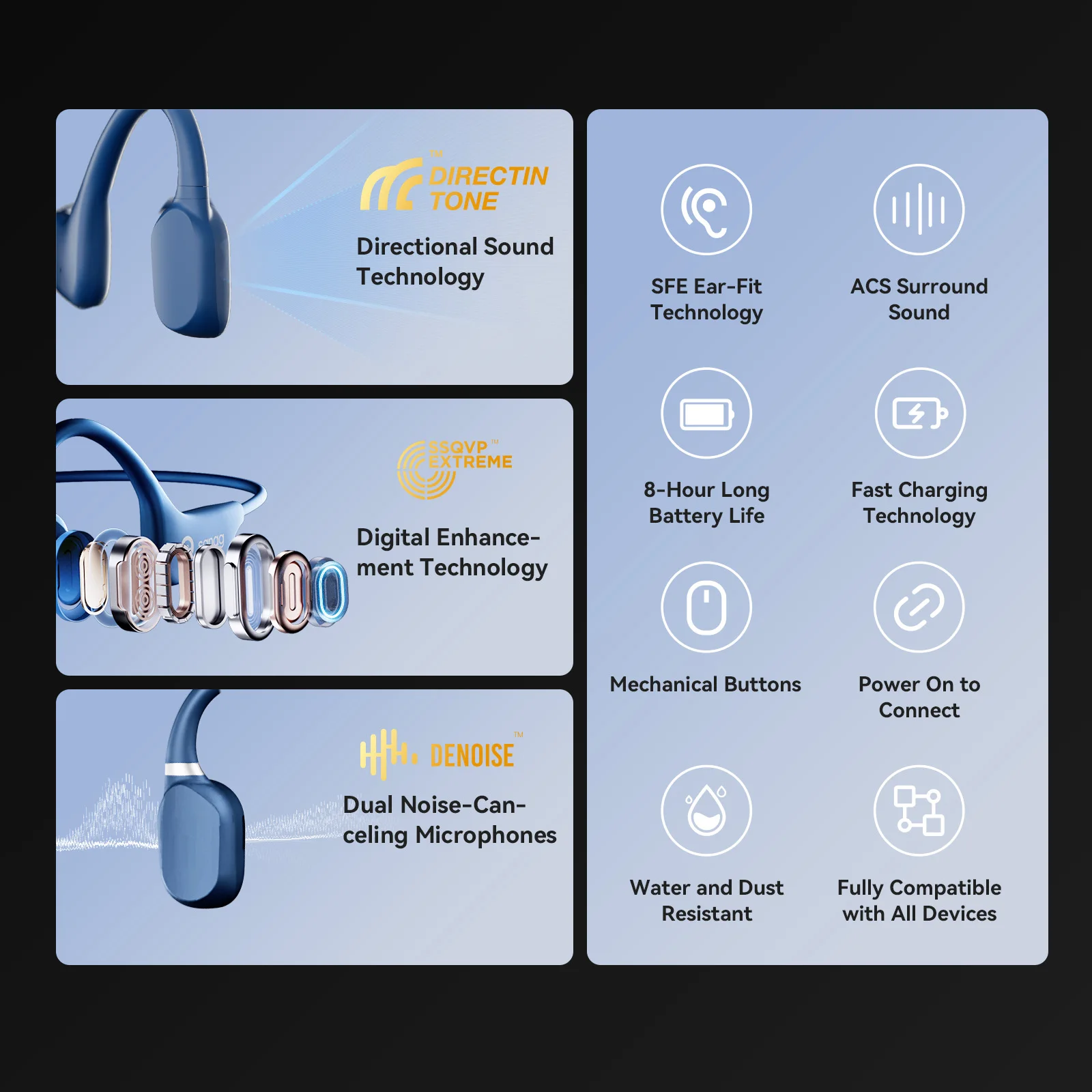 ? 진정한 뼈 전도 3D 스테레오 사운드를 제공하는 진정한 뼈 전도 기술로 맑은 음질을 즐기십시오