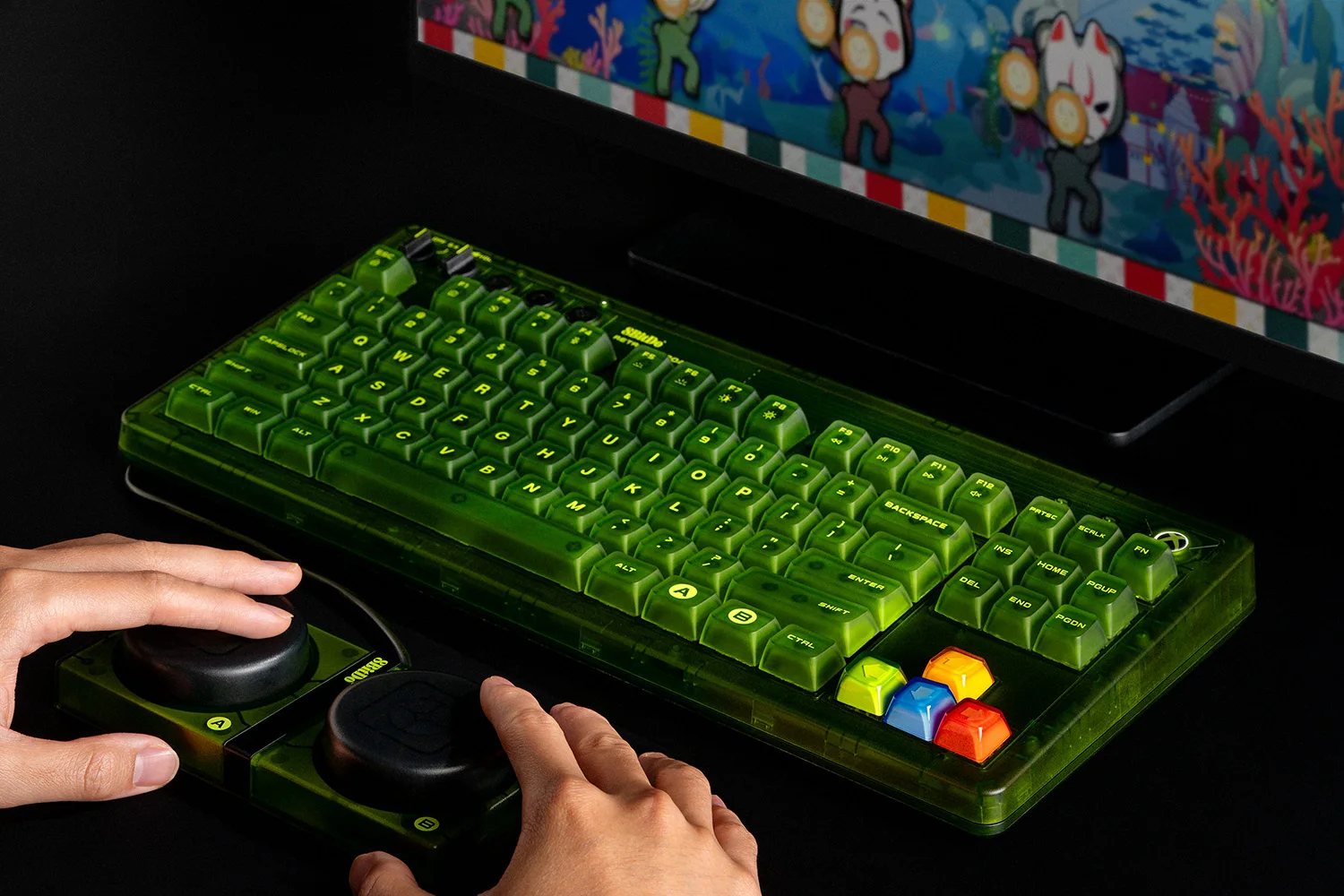 8 RGB 조명 모드 간을 전환 생생한 조명이 옥과 같은 투명한 녹색 껍질과 정교하게 만들어진 이중 레이어 키캡을 통해 비춰져 시각적으로 몰입감 있는 타이핑 경험을 만들어냅니다