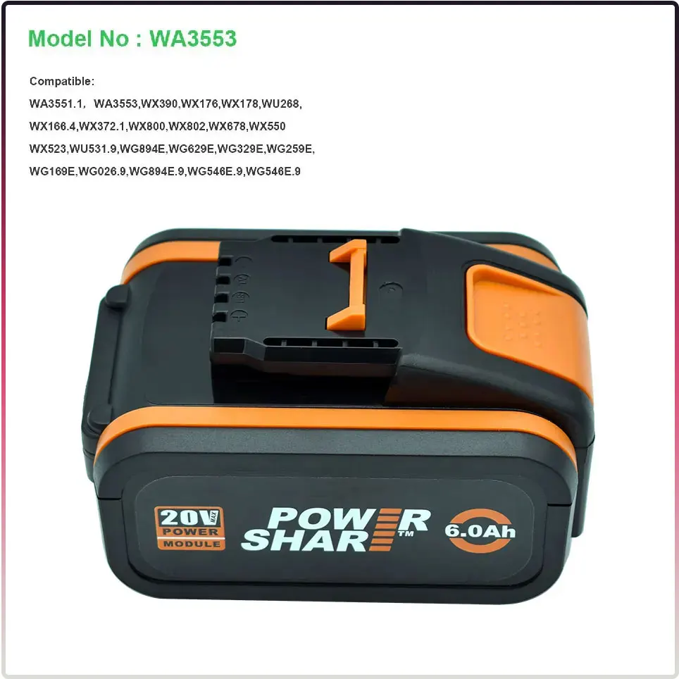 WA3553 배터리 무선 전동 공구 예비 배터리 WA3572 WA3553 WX390 WA3551 WX176 WX178 배터리 용 20V/6 0ah 배터리
