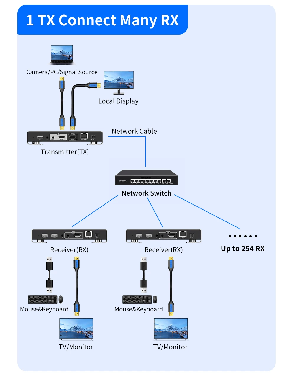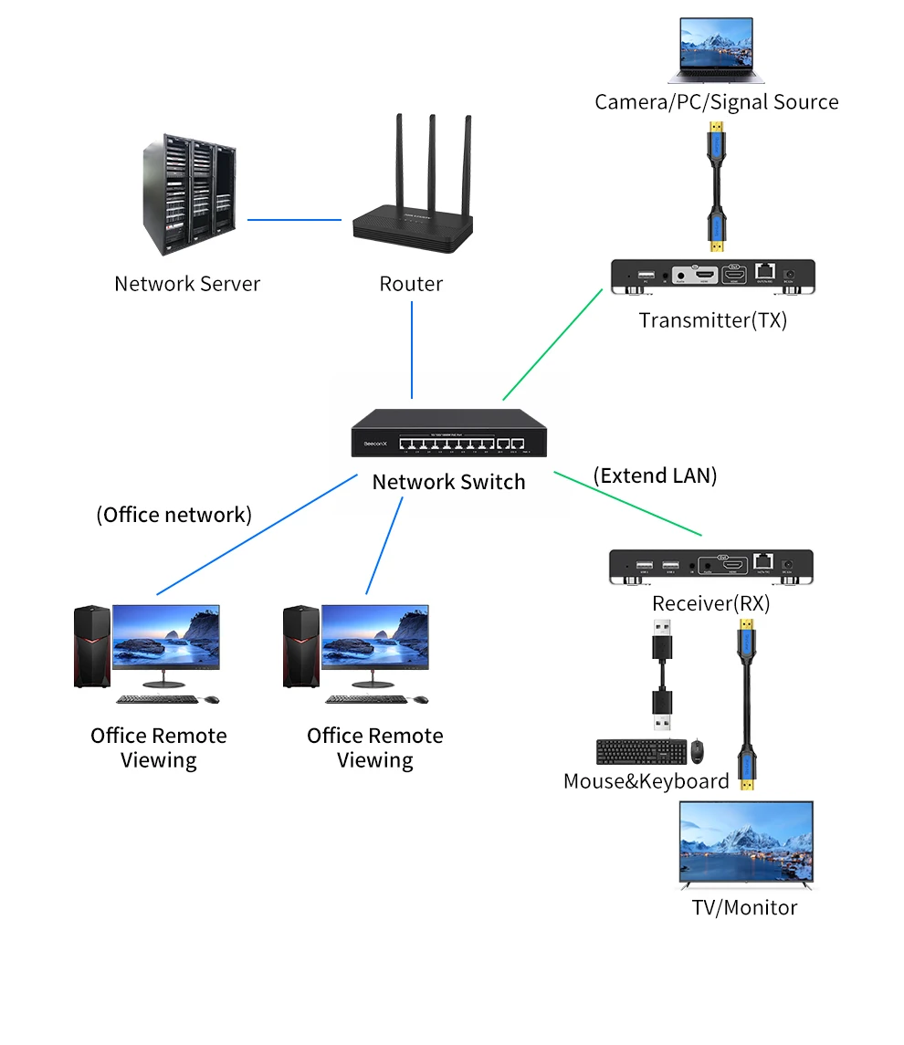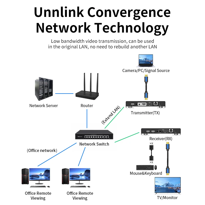 낮은 대역폭 비디오 전송 원래 LAN에서 사용 있으며 다른 LAN을 다시 구축할 필요가 없습니다