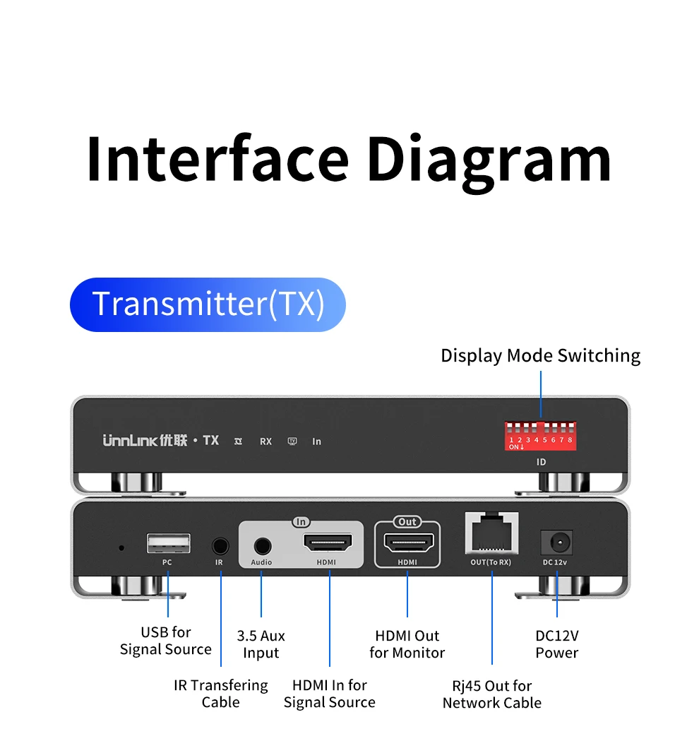 송신기는 HD 루프 출력 디스플레이 로컬 보기/원격 디버깅을 더 빠르게 지원