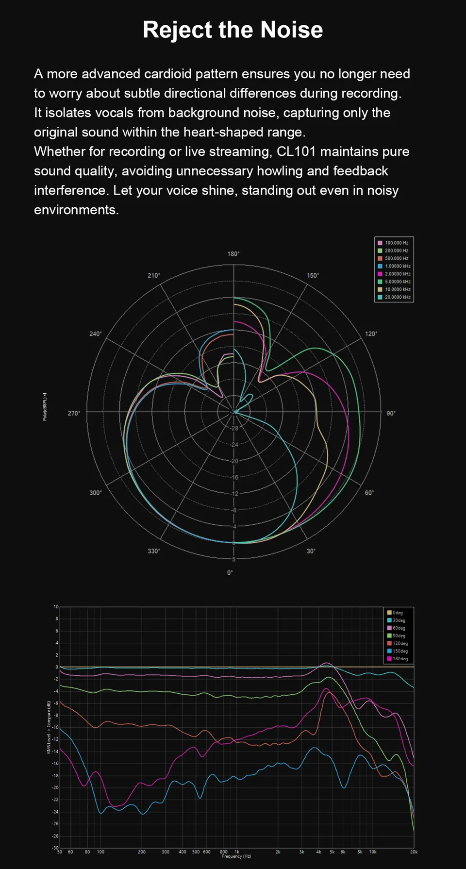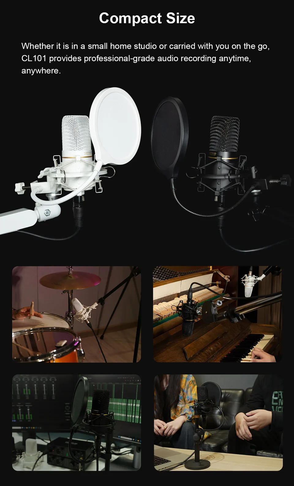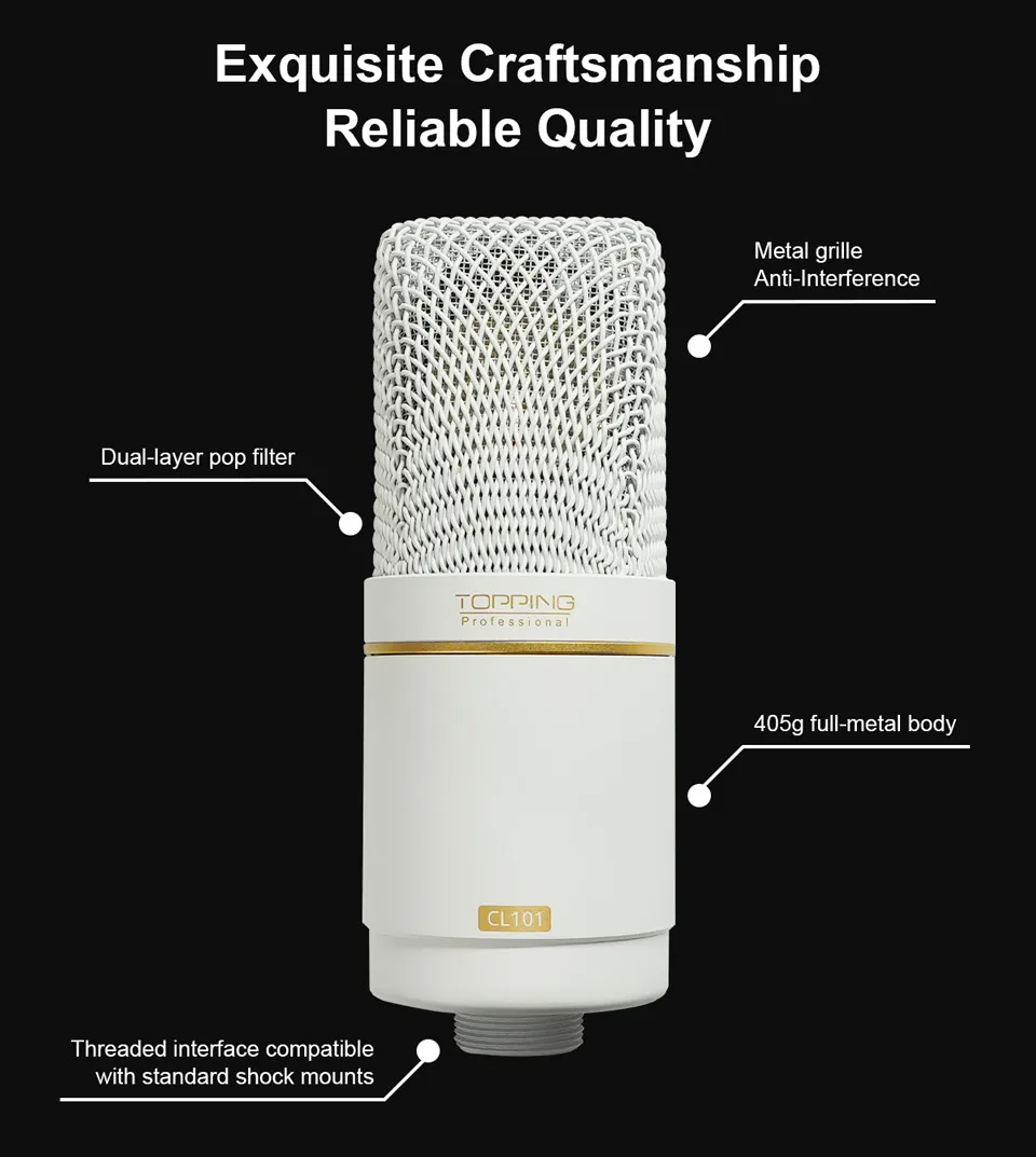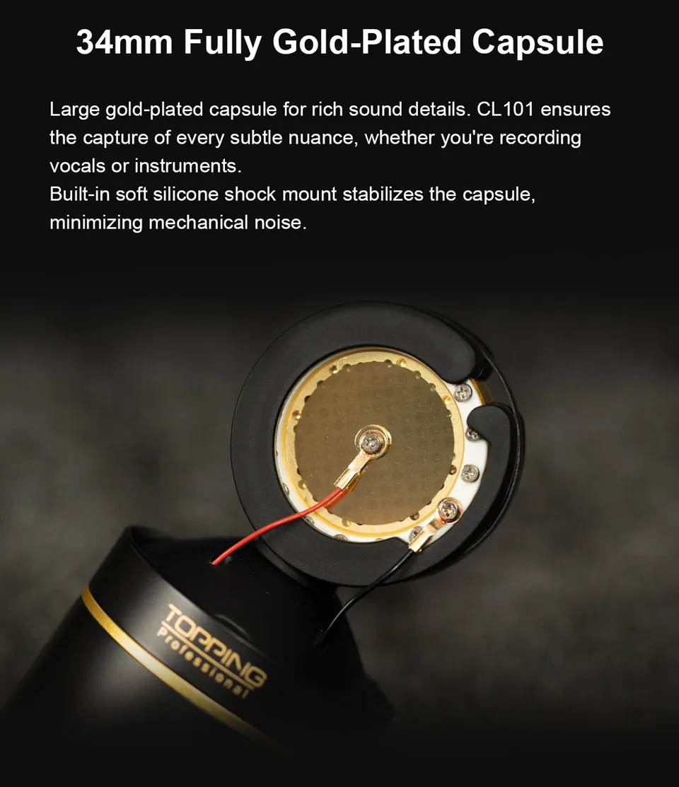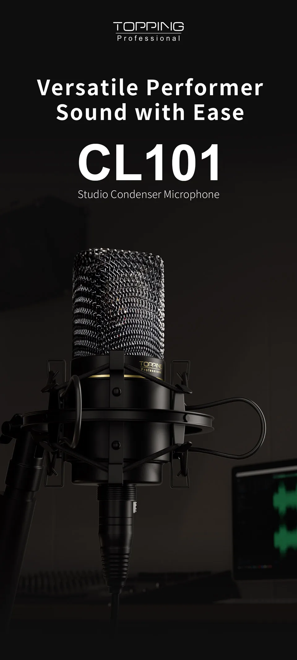 TOP CL101 스튜디오 콘덴서 마이크 카디오이드 폴라 패턴 초저소음 34mm 금도금 캡슐 Reco