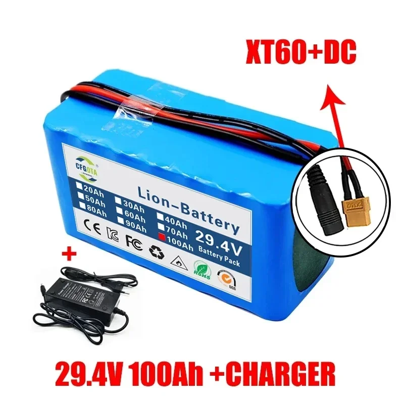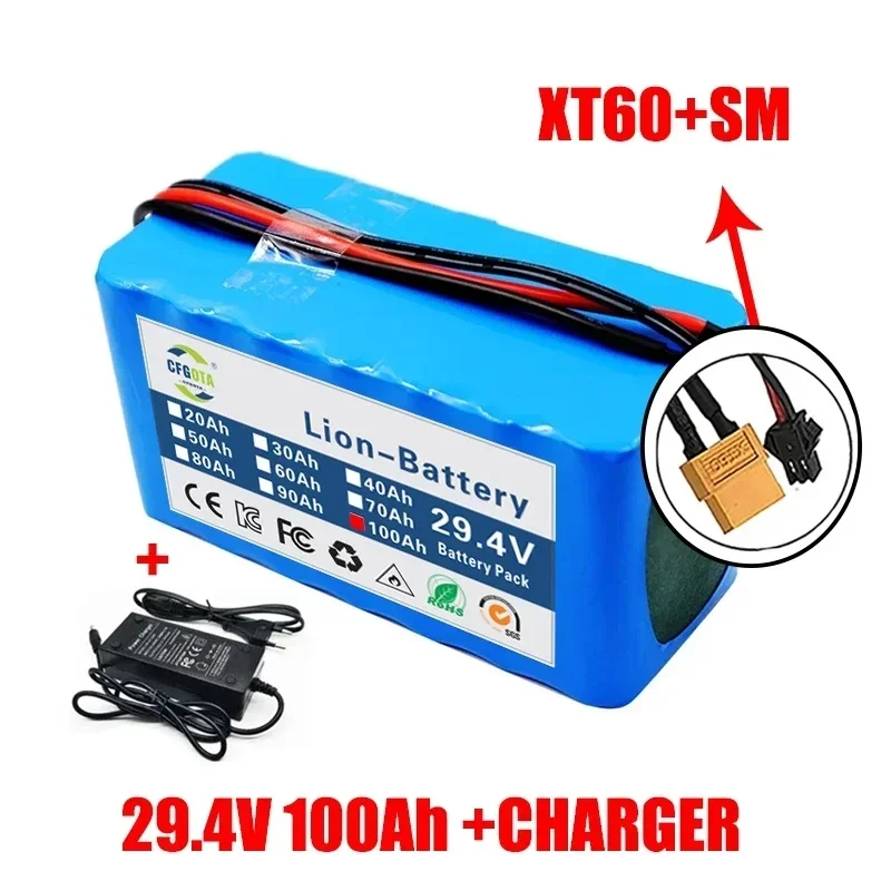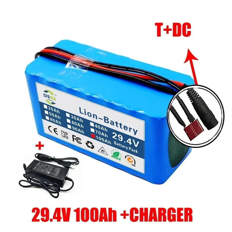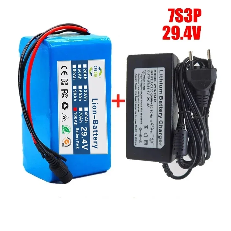 새로운 24V 100Ah 7S3P 18650 배터리 이온 29 4v 100000mAh 엘레트리코 델라 비시클레타 시클로모텔/엘레트리코/agli ioni 디 리티오 배터리 팩 29 4 2A 충전기