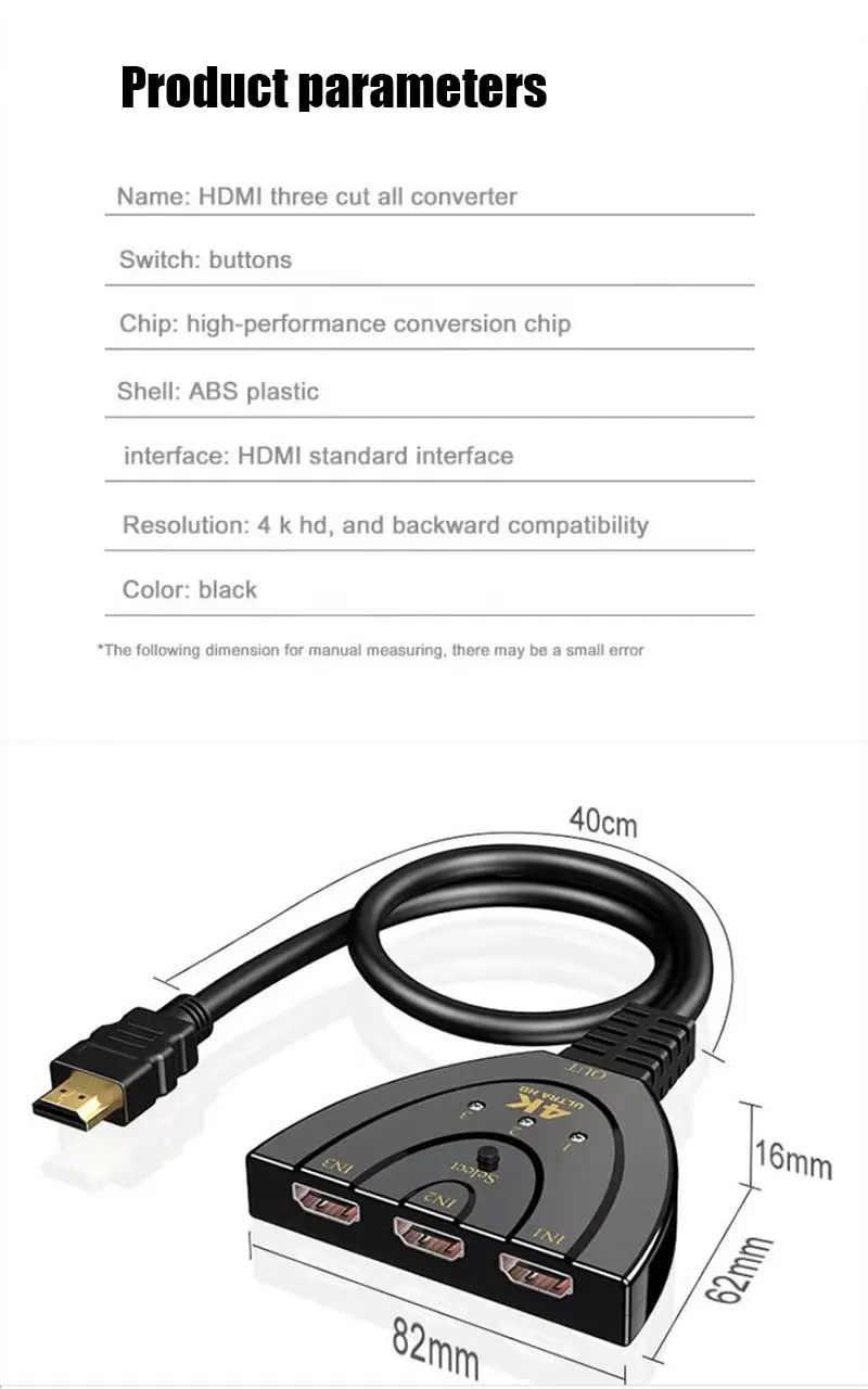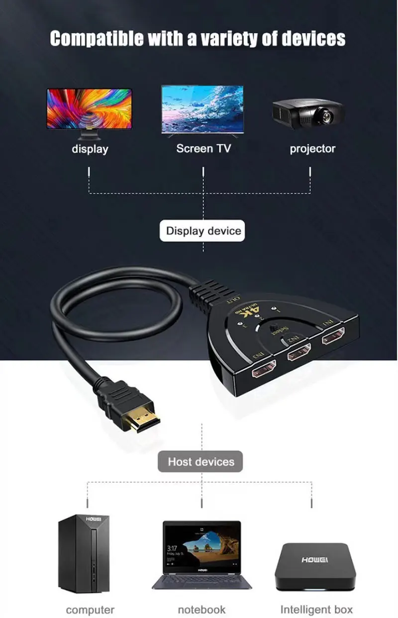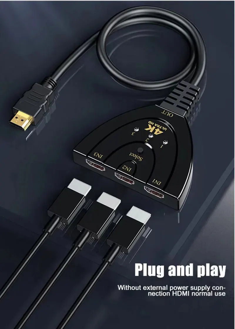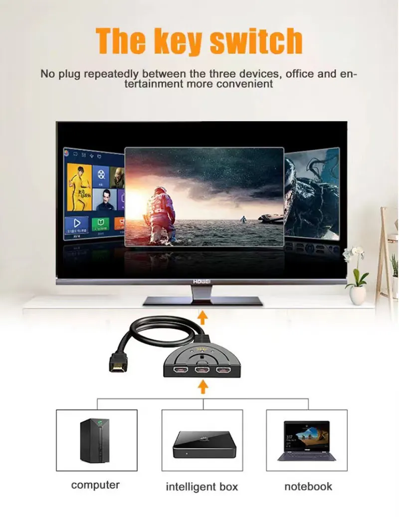 HD 호환 스위치 KVM 스플리터 DVD HDTV 용 3 입력 1 출력 4K 2K 3D 미니 3 포트 비디오 스위처 허브 1080P