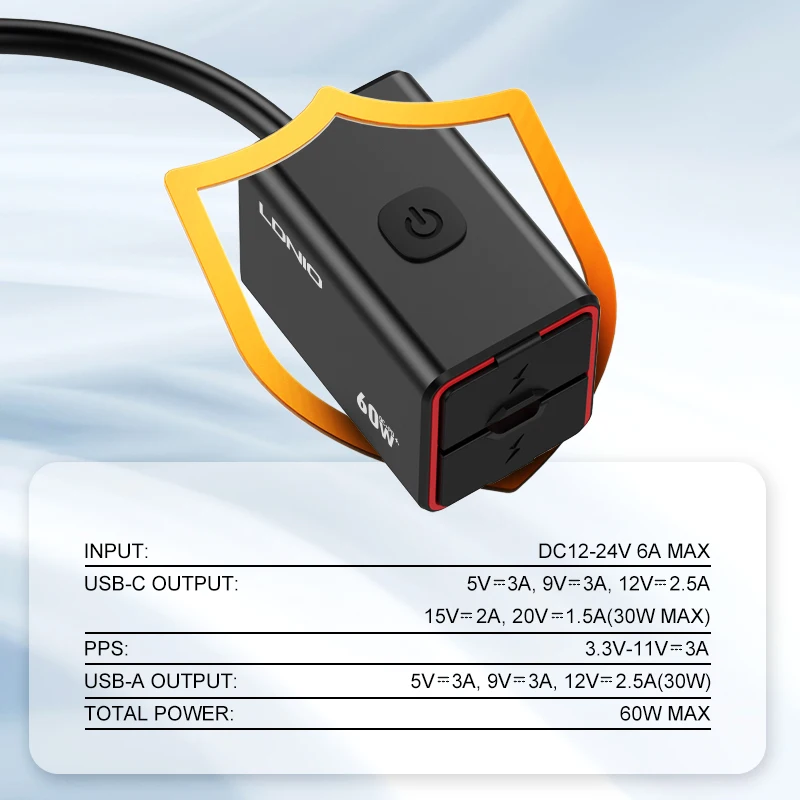 USB A OUT T 5V 3A 9V 3A 12V 2 5A(30W)