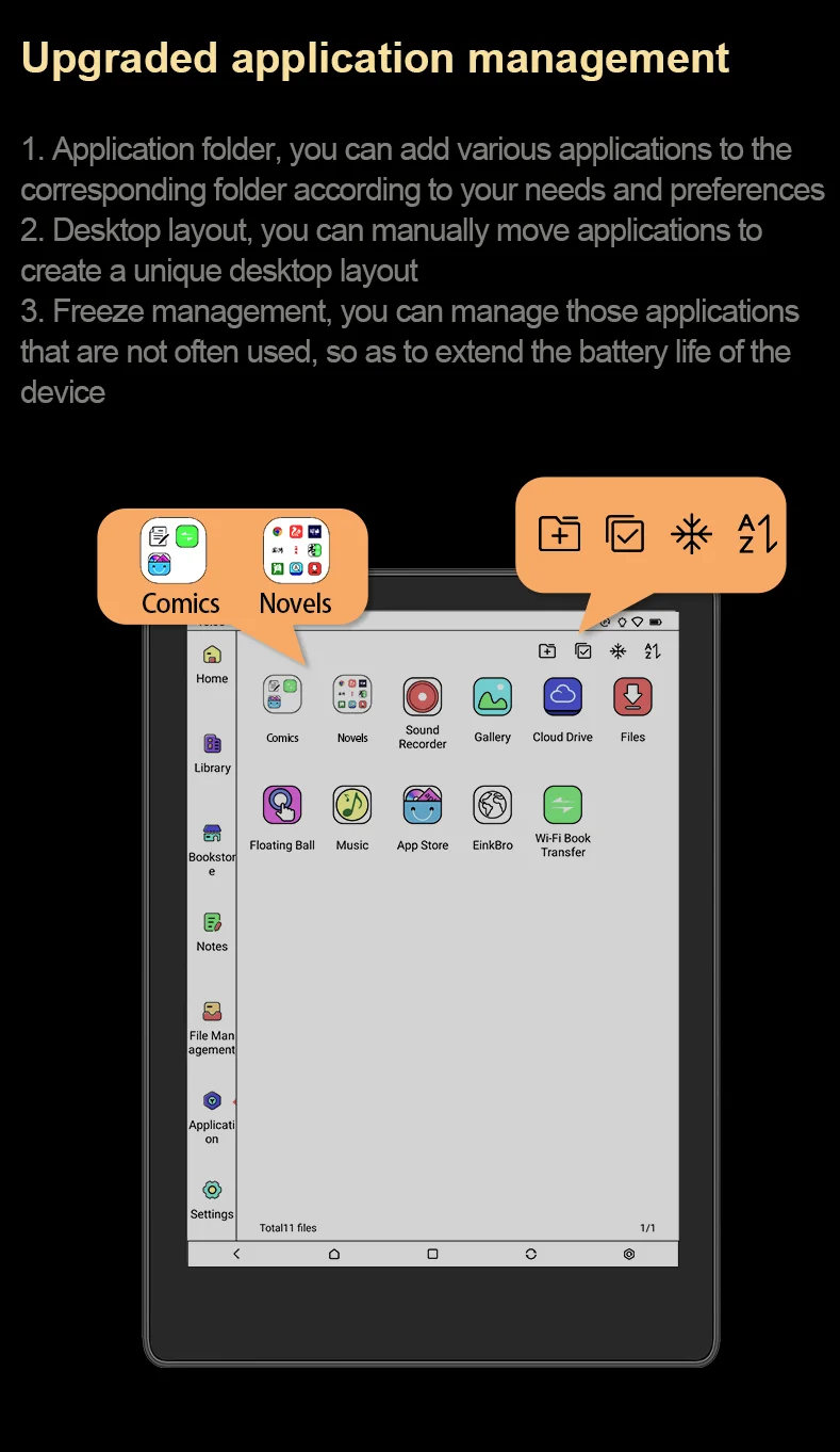 3 펌웨어는 개방형 CBZ CBR Djvu AZW3 형식을 직접 지원하고 사용자가 직접 글꼴 및 화면 보호기를 변경 있도록 지원