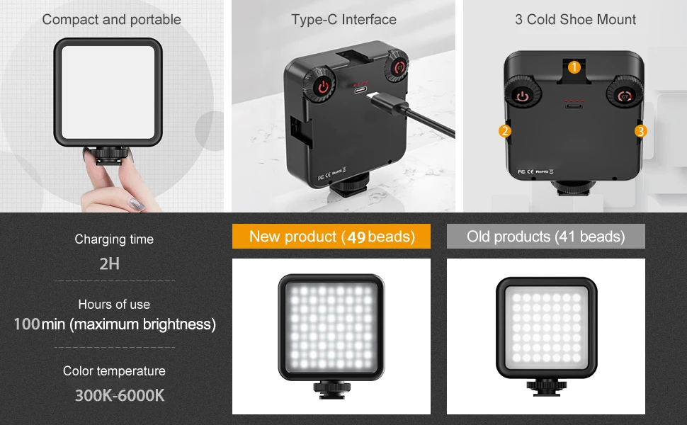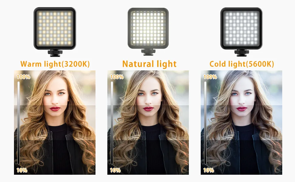 LED 비디오 라이트 휴대용 사진 온 카메라 3000K 6000K DSLR 카메라 캠코더 Vlog 용 바이 컬러 조명 콜드