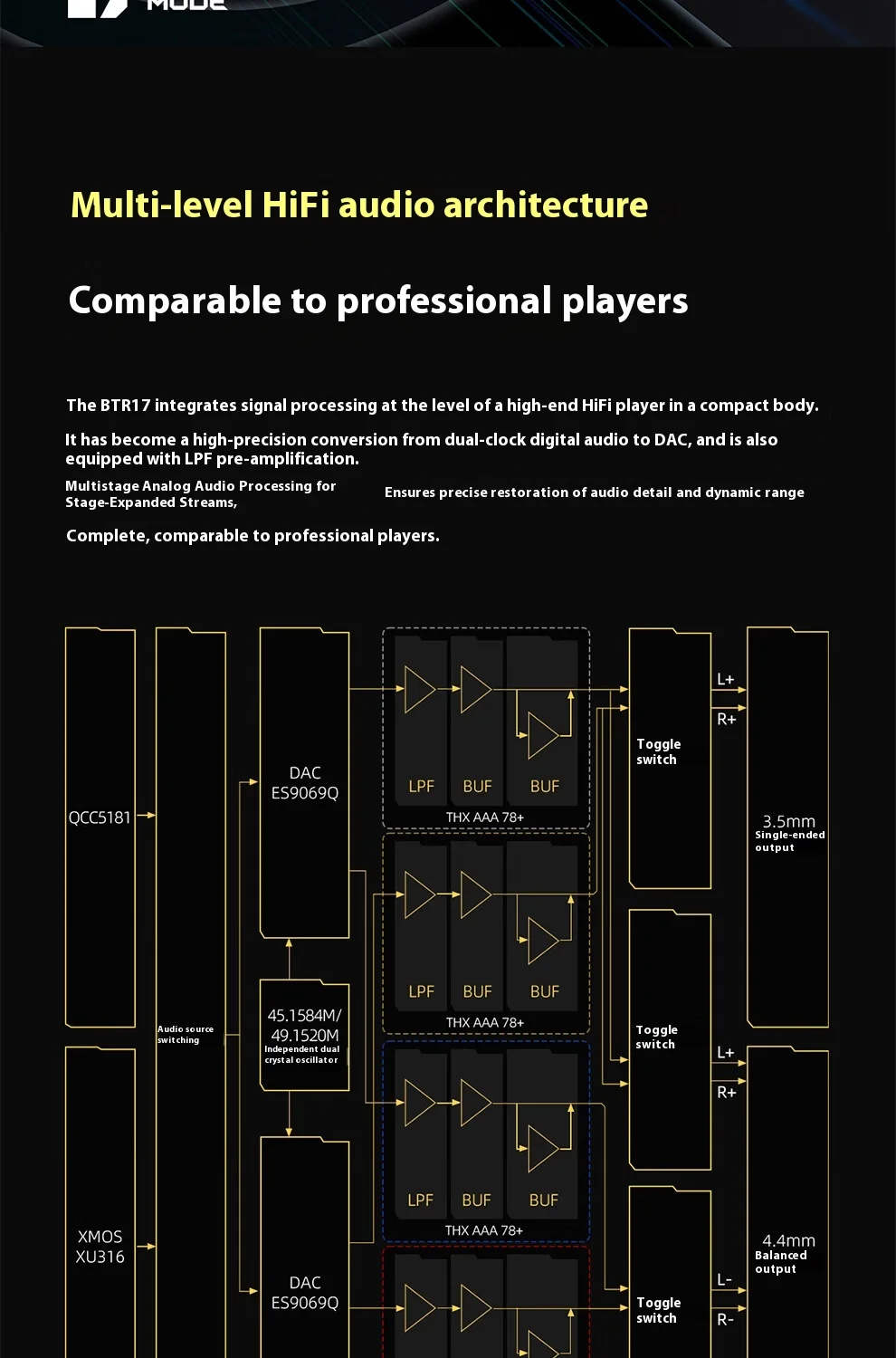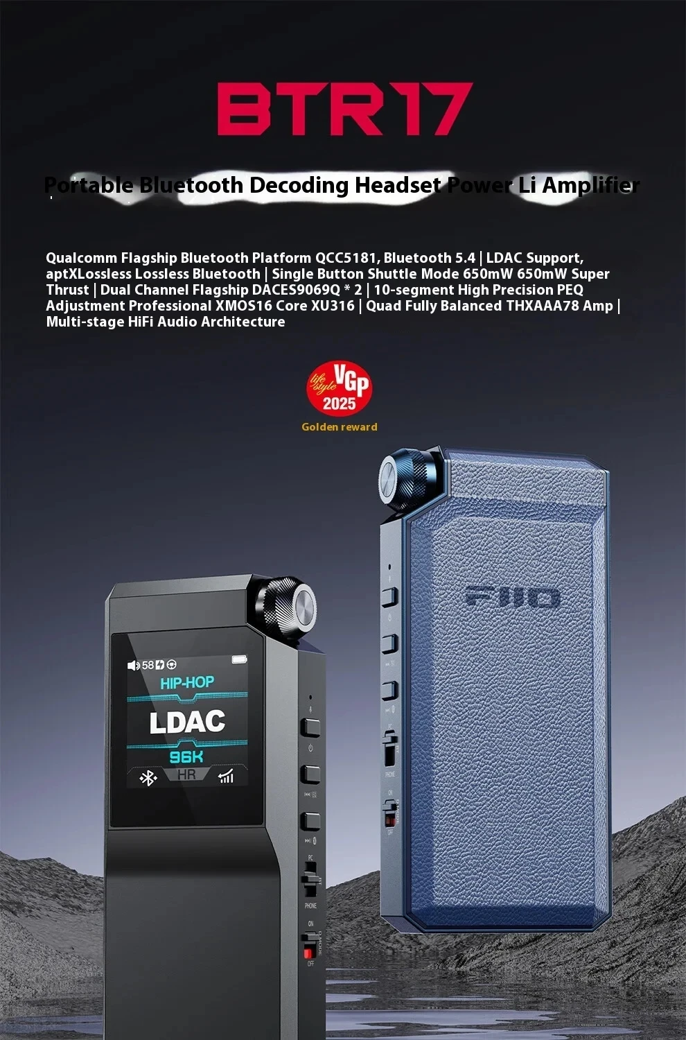 FiiO BTR17 휴대용 블루투스 디코딩 이어폰 전력 HiFi AAC/SBC/aptX/aptXAdaptive/aptxL less/atXHD/LDAC