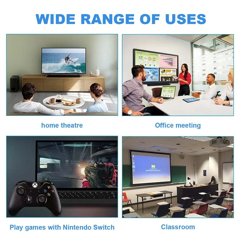 플러그 앤 플레이만 하면 됩니다 어댑터 드라이버 필요한 소프트웨어 또는 기타 액세서리가 필요하지 않습니다 더 비싼 알루미늄 케이스와 금도금은 더 나은 성능과 세련된 외관을 제공 새롭게 업그레이드된 칩 솔루션과 3중 구리 차폐로 견고한 연결을 제공 화면 깜박임이나 흰색 점이 줄어들고 비디오가 더욱 완벽해집니다