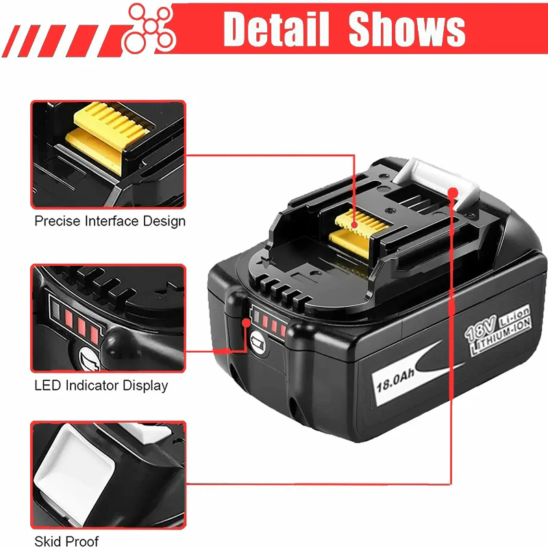 [적용 모델] 18V 배터리 BL1860 BL1860B BL1850 BL1850B BL1840 BL1840B BL1830 BL1830B BL1815 BL1825 BL1835 BL19405 BL19404 무선 전동 공구 배터리를 교체하십시오 지원194205 3194230 4194204 5 LXT40은 18RC 18RA 및 기타 고속 충전과 호환됩니다 당사 배터리는 18RF 충전기와 호환되지 않습니다