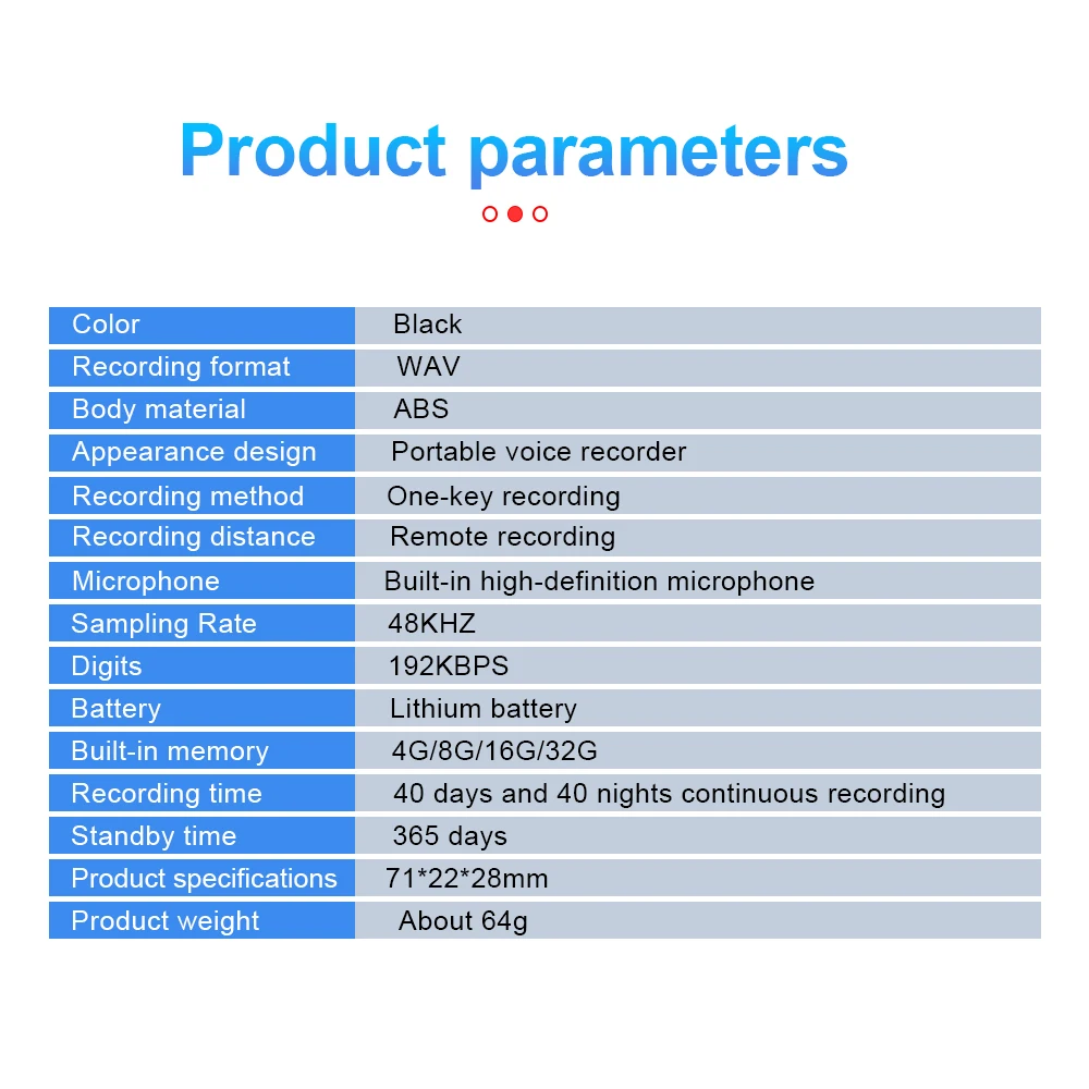 | 모델 번호 | Strong magnetic voice recorder espia |
