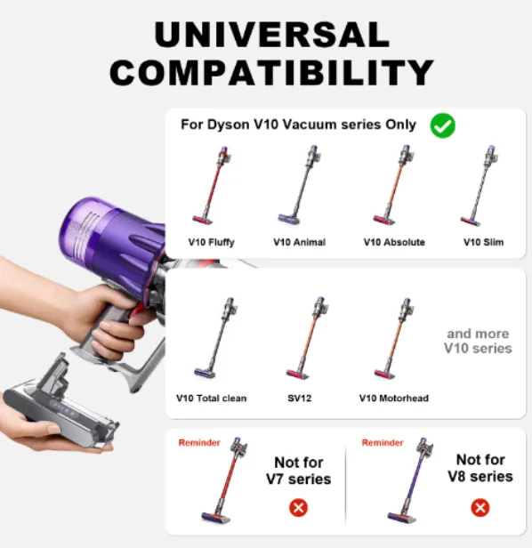 V10 동물 진공 청소기 배터리의 경우 다음 모델과 호환됩니다 ( Ctrl F 를 사용하십시오)