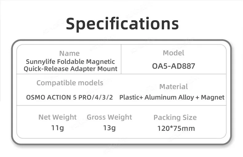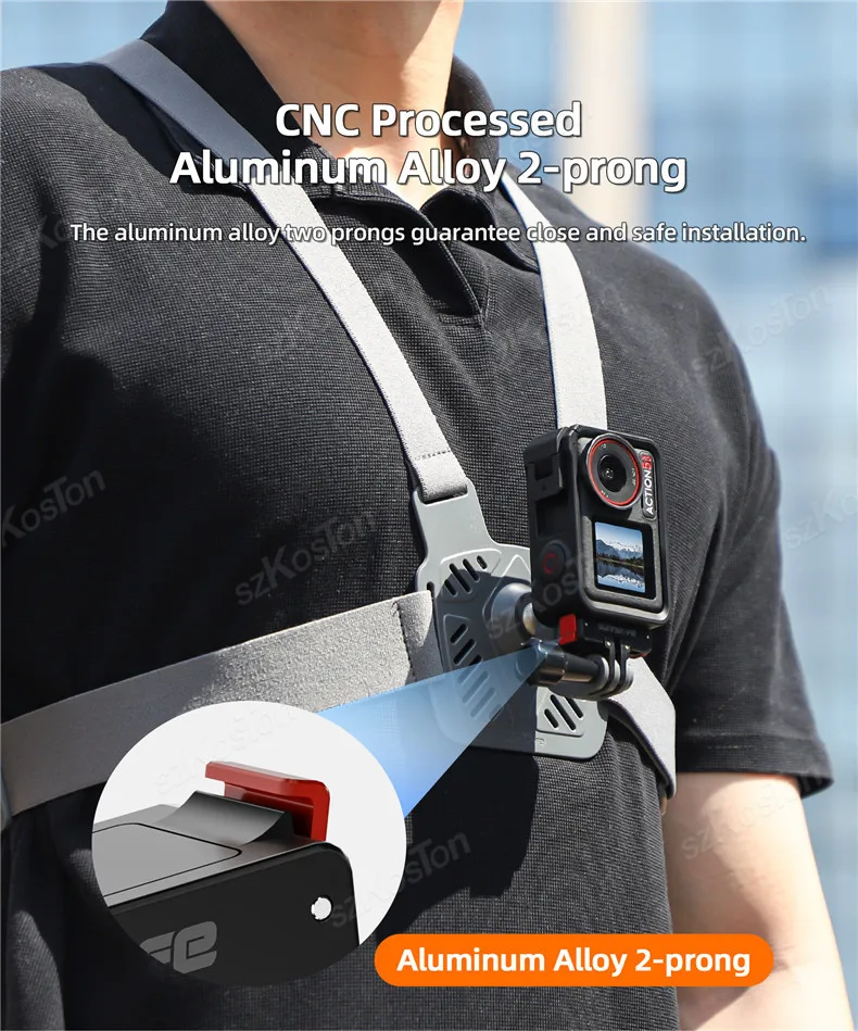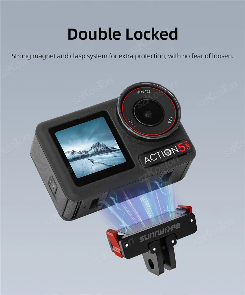 안정성을 두 배로 높이는 클로 버클이 있는 걸쇠 강력한 자력과 알루미늄 합금 클로 버클의 조합으로 액션 촬영 시에도 흔들림 없이 안전하게 장착됩니다