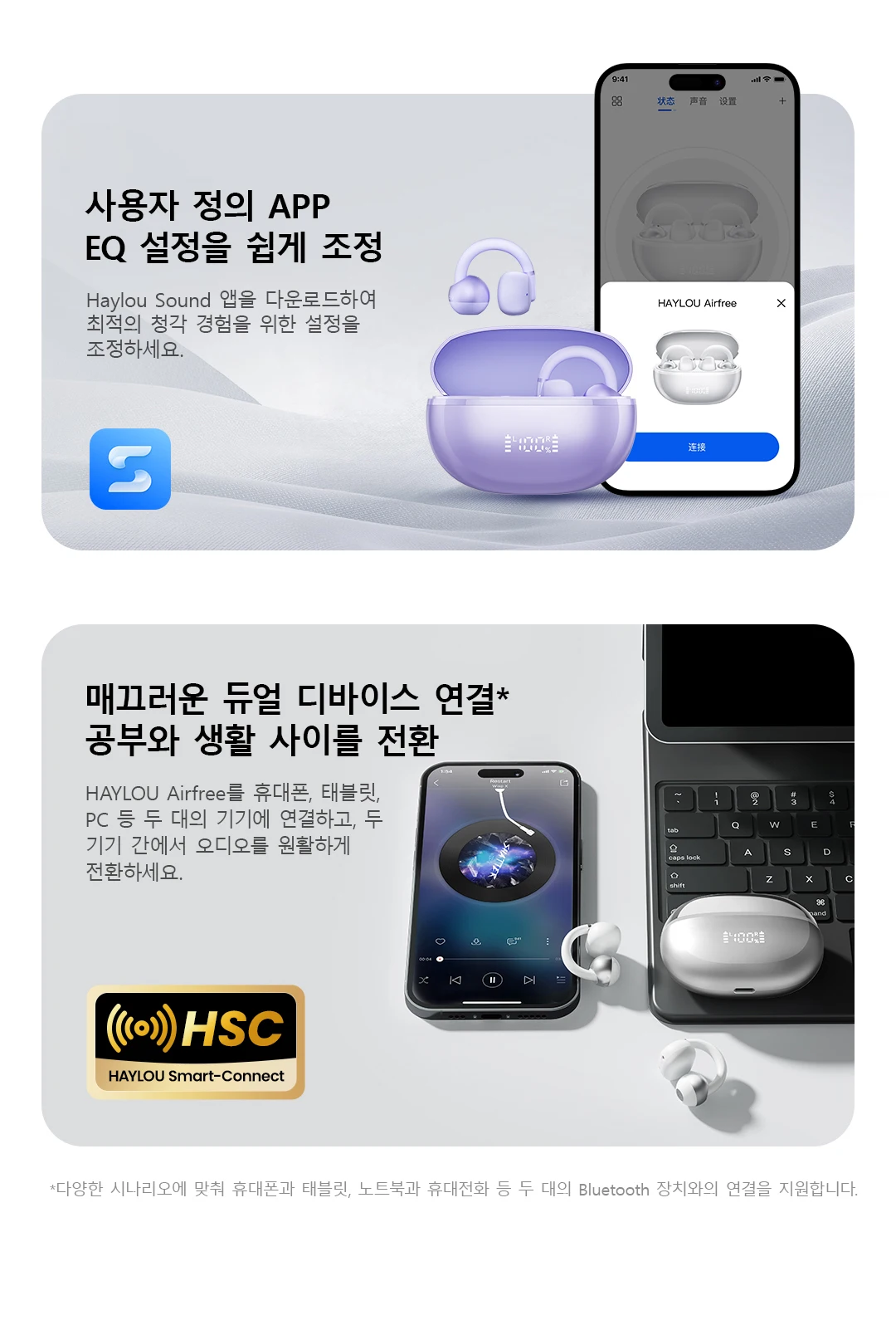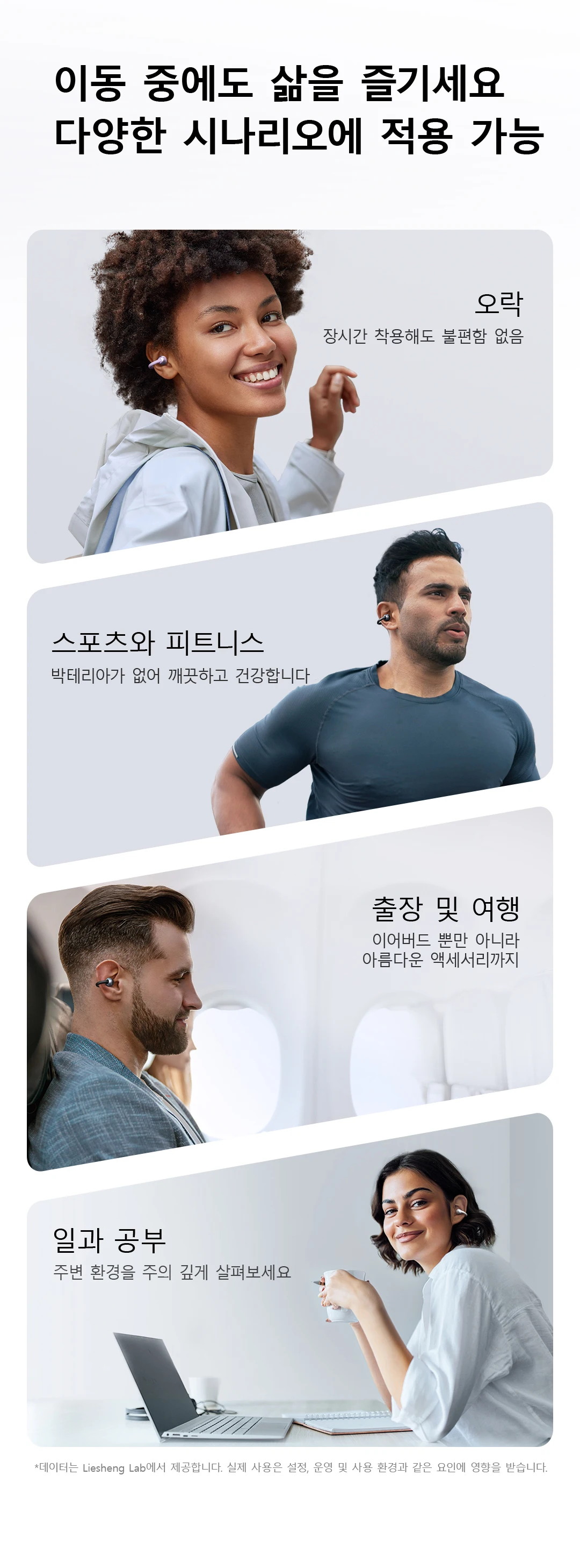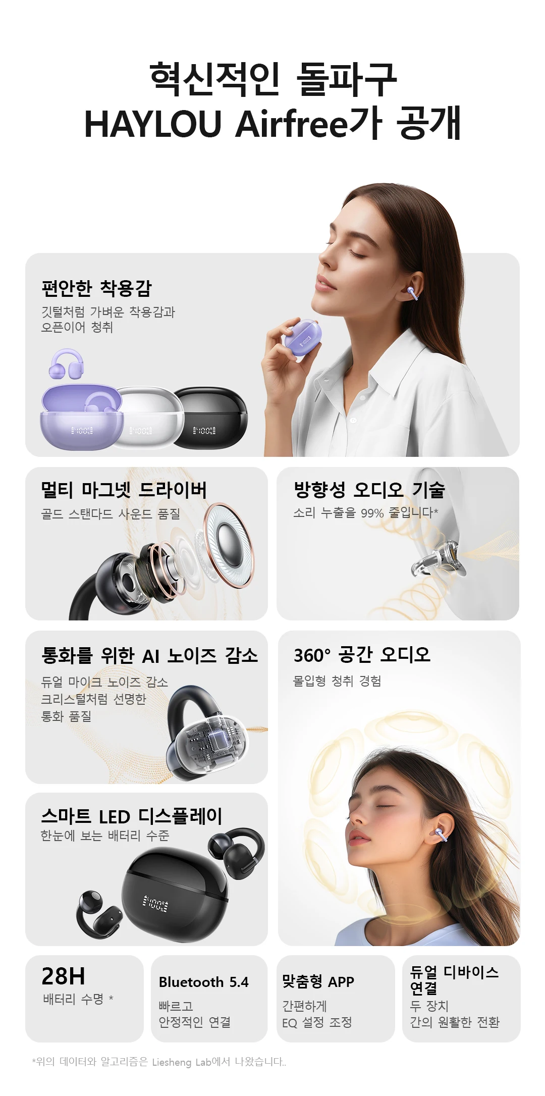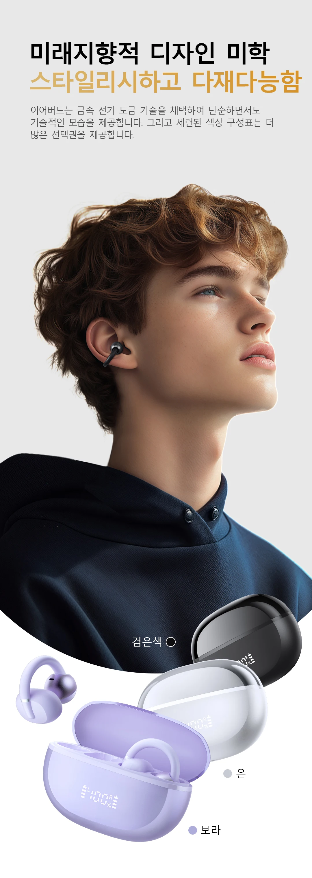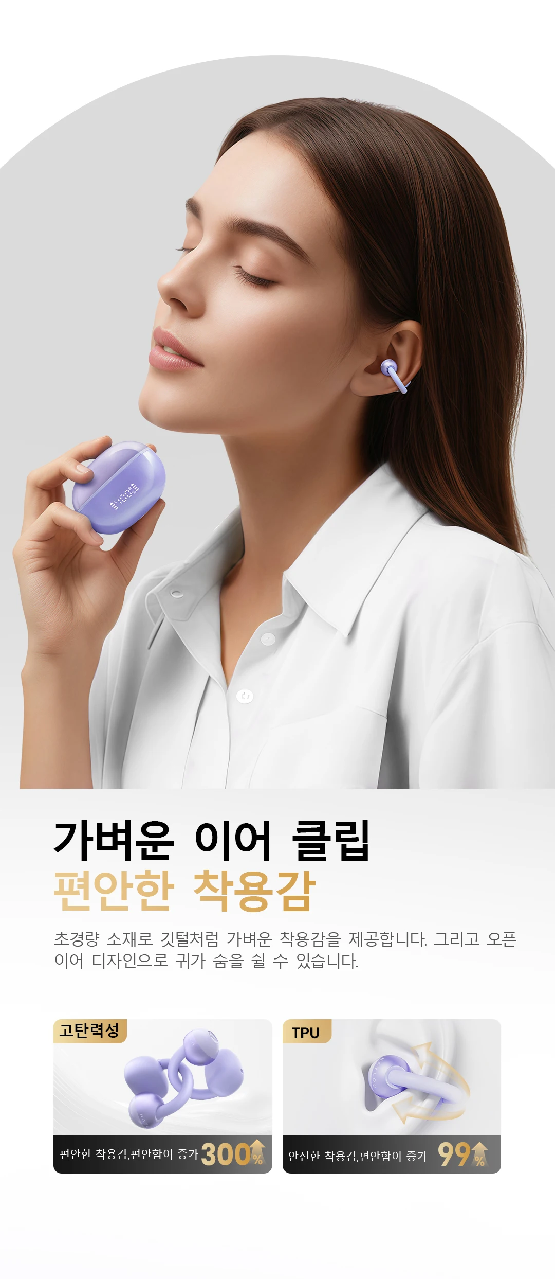 초경량 소재는 깃털을 가볍게 착용하는 경험을 제공 그리고 열린 귀 디자인은 여러분의 귀가 숨을 쉬게 해줍니다