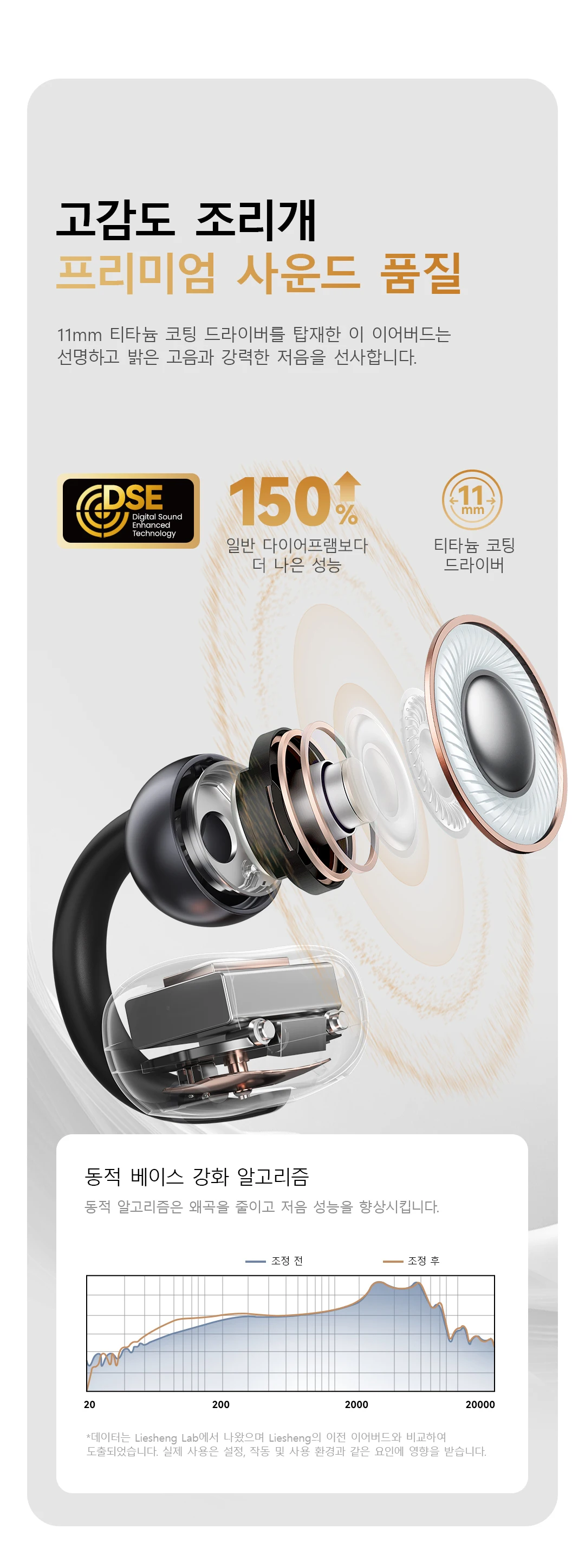 11mm 티타늄 코팅 드라이버가 특징인 는 선명하고 밝은 하이라이트와 강력한 저음을 제공