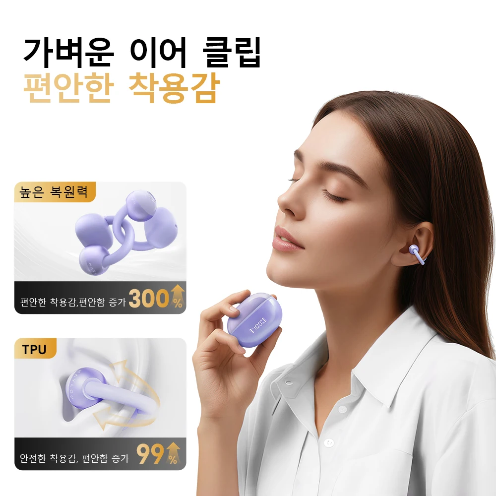 LOU AirFree 이어 클립 이어폰 블루투스 5 4 무선 이어폰 AI 소음 감소 스포츠 폰 스마트 LED 디스플레이