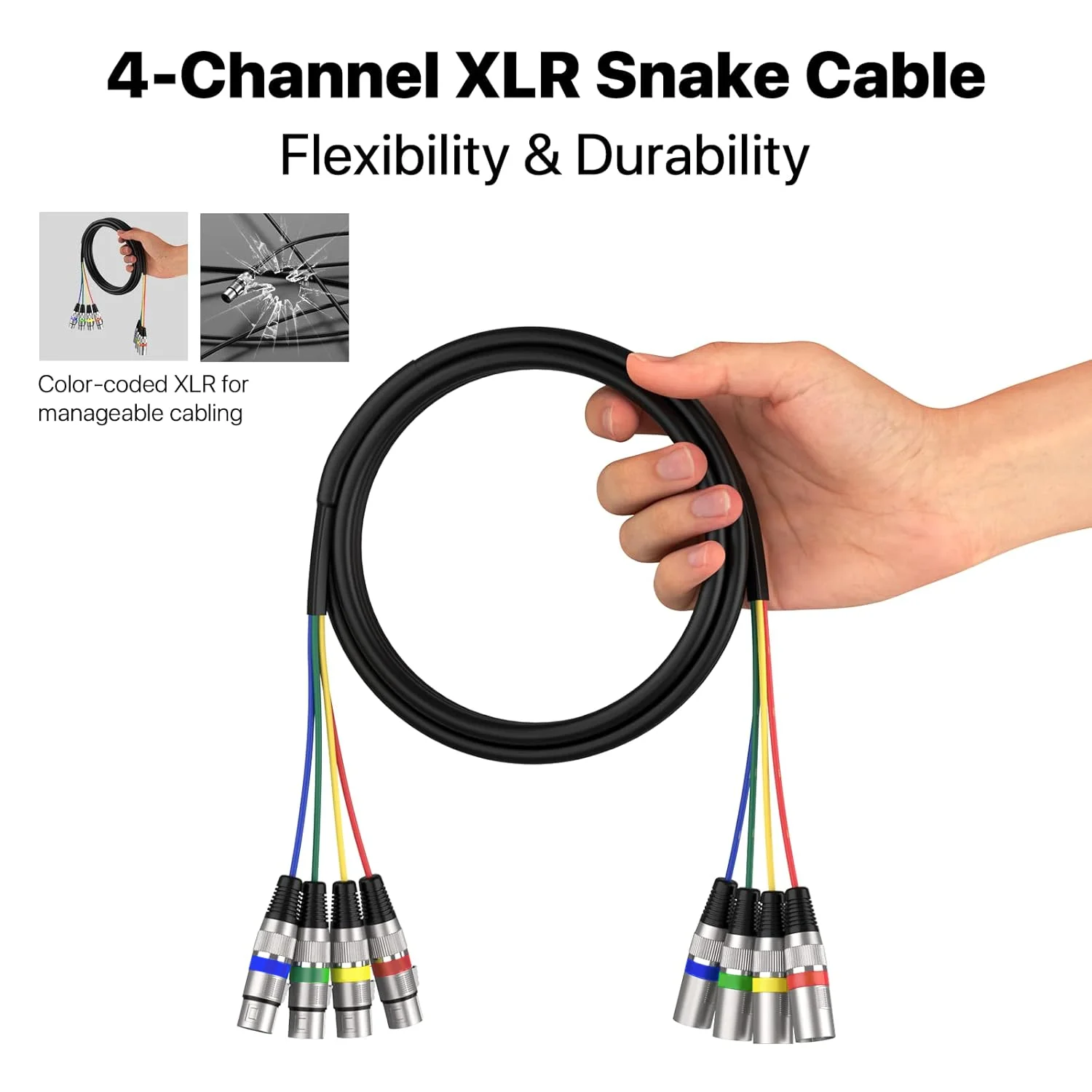 ?[ ly Upgraded 4 channel Design] The Snake cable is specially designed for 4 channels (also suitable for 1/2/3 channels) and can be used to trans t b nced mono o signals from 4 devices to 4 other devices One cable equals the work of 4 cables It is easy to carry and store and it can easily solve the t ble of winding multiple single channel cables
