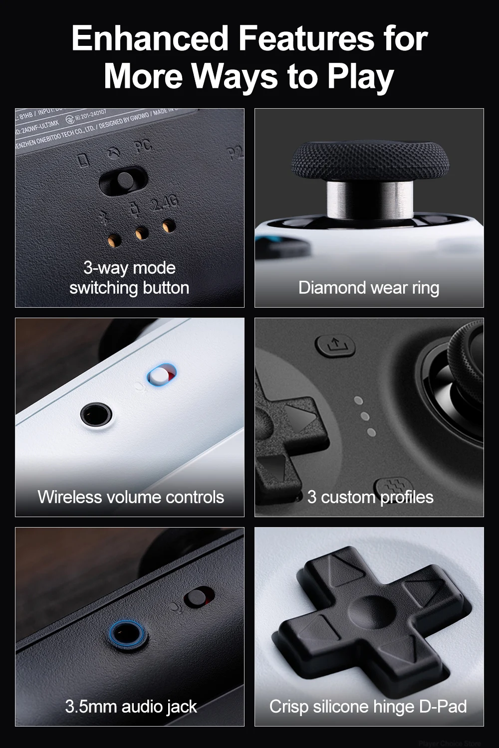 3방향 모드 전환 버튼 다이아몬드 착용 반지 무선 볼륨 조절 3 프로필 3 5mm 오디오 잭 선명한 실리콘 힌지 D 패드