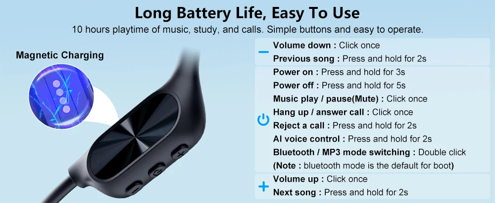 | Features5 | Built-in 32GB Memory True Bone Conduction Wireless Headphones |