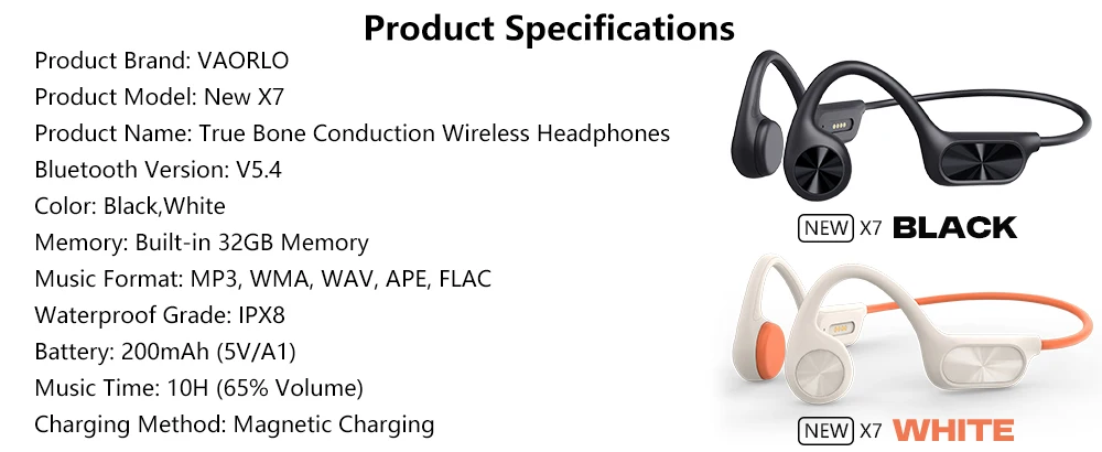 | VAORLO 모델 | New-X7 True Bone Conduction Wireless Headphones |