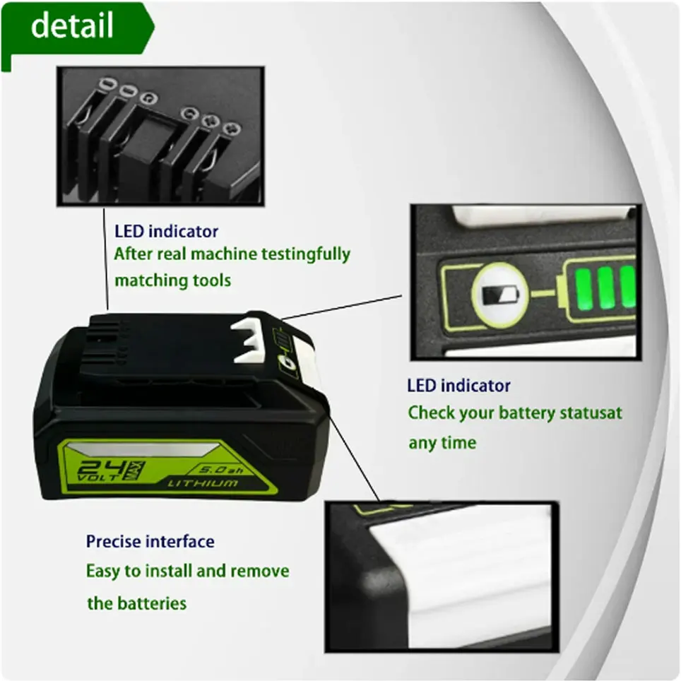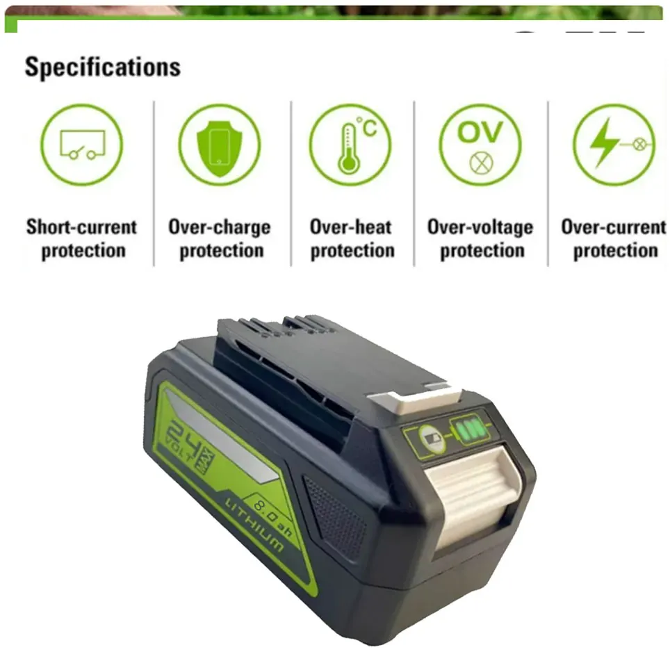 24V 이온 플랫폼은 잔디 깎는 기계 송풍기 스트링 트리머 전기톱 전동 공구 등을 포함한 50개 이상의 실내 및 실외 제품에 전원을 공급 24V 이온 배터리는 전력의 20 작동시간의 35 를 제공하며 충전 후에도 메모리 손실이 없는 무색의 전원을 제공 실외 전력 장비를 사용하면 사용 가능한 1 5Ah 2Ah 및 4Ah 배터리를 사용하여 최대 1/4에이커의 배터리를