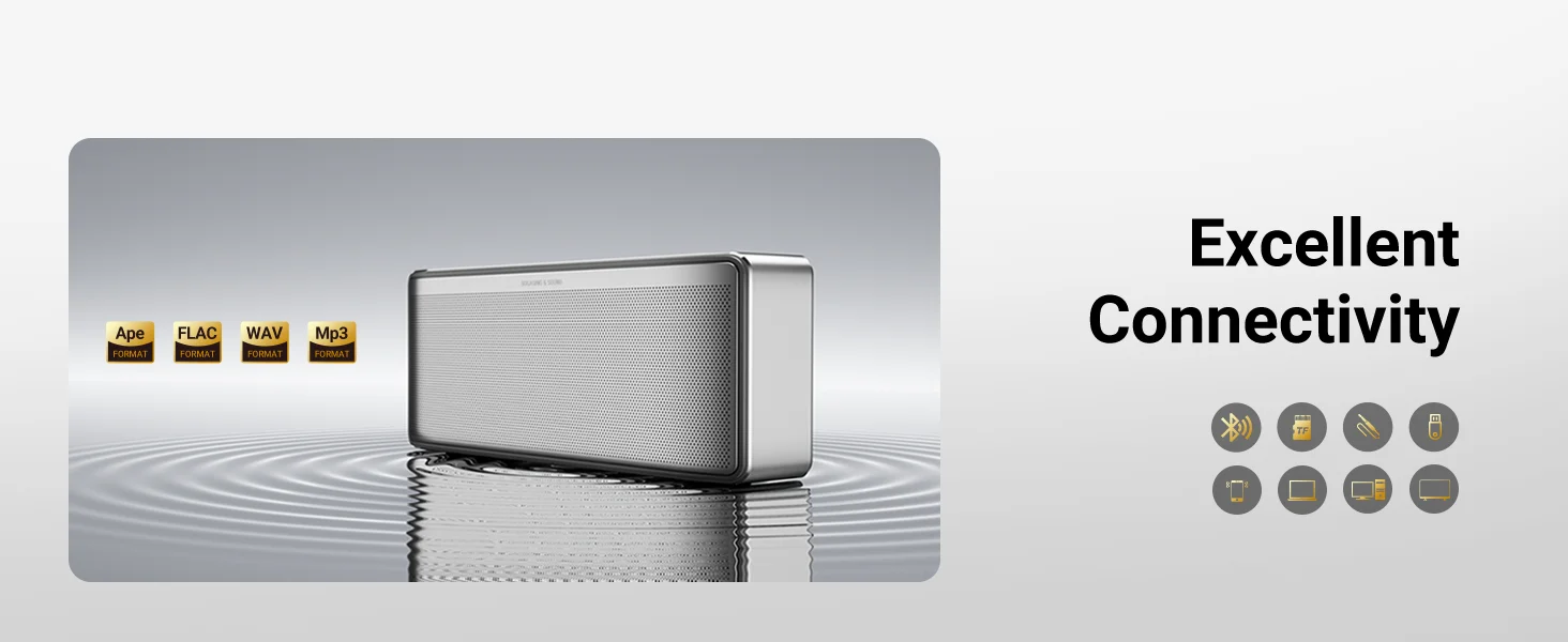 It adopts advanced Bluetooth 5 3 technology which vides a faster and more stableconnection lt also supports TF card USB flashdrive and AUX in t