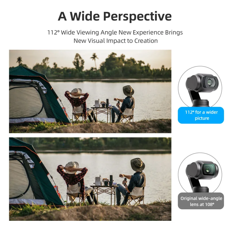 향상된 시야각 OSMO ket 3용으로 특별히 설계된 이 광각 는 카메라의 FOV를 112까지 늘릴 수 ° 놀라운 광각 사진을 촬영하세요