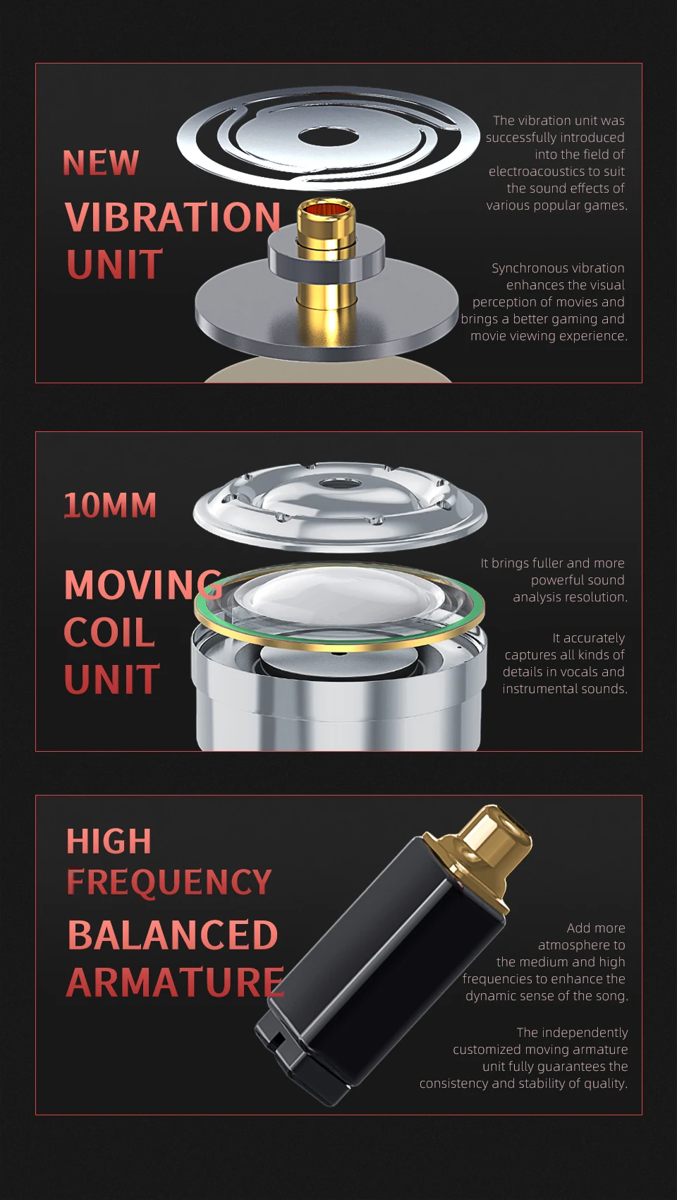 업계 의 혁신 진동이있는 셋 1DD 1BA 1 진동 트리플 유닛 매우