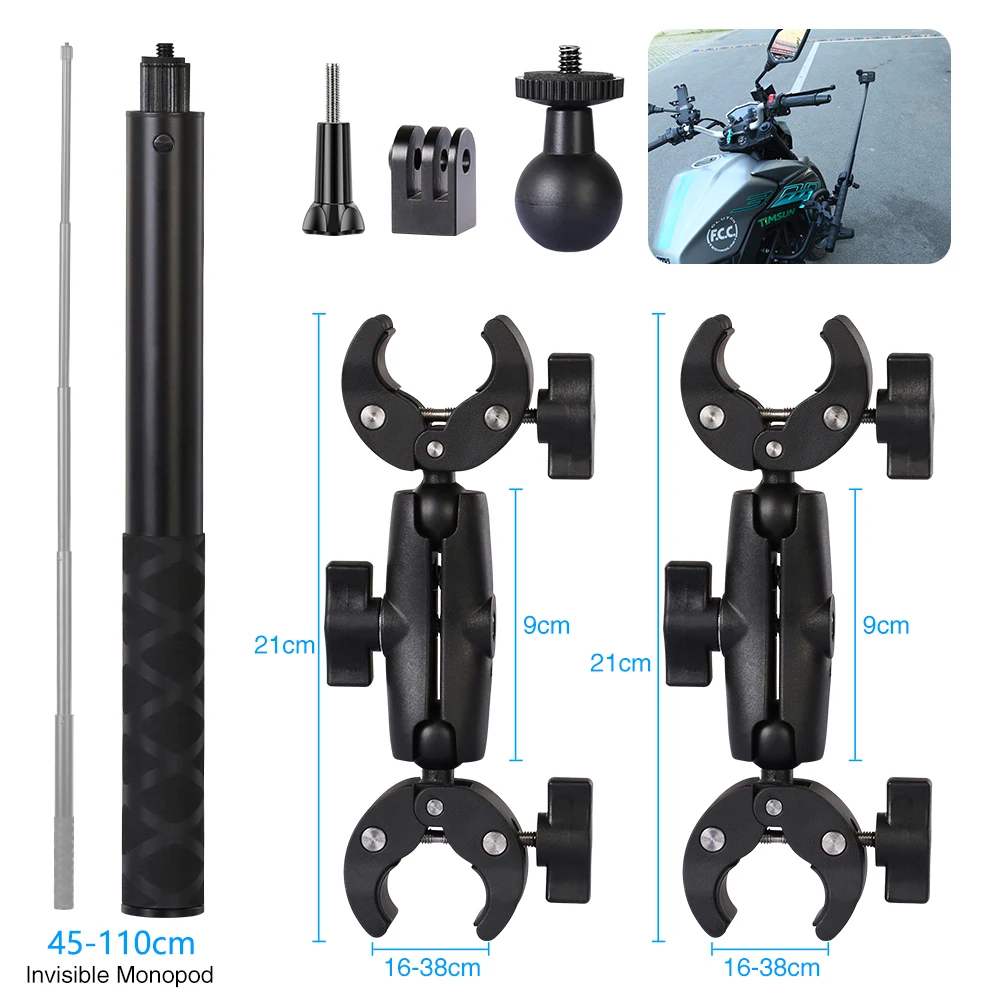 ta360 용 오토바이 자전거 셀카 스틱 Max Hero 11 액세서리 용 X2 X3 모노 포드 핸들 바 장착 브래킷