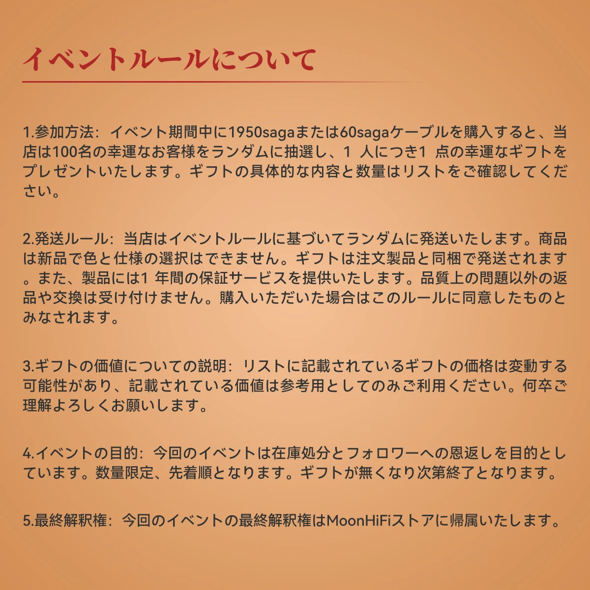 2 ?送ル?ル:?店はイベントル?ルに基づいてランダムに?送いたします。商品は新品で色と仕?の選?はできません。ギフトは注文製品と同梱で?送されます。また、製品には1 年間の保?サ?ビスを提供いたします。品質上の問題以外の返品や交換は受け付けません。購入いただいた場合はこのル?ルに同意したものとみなされます。