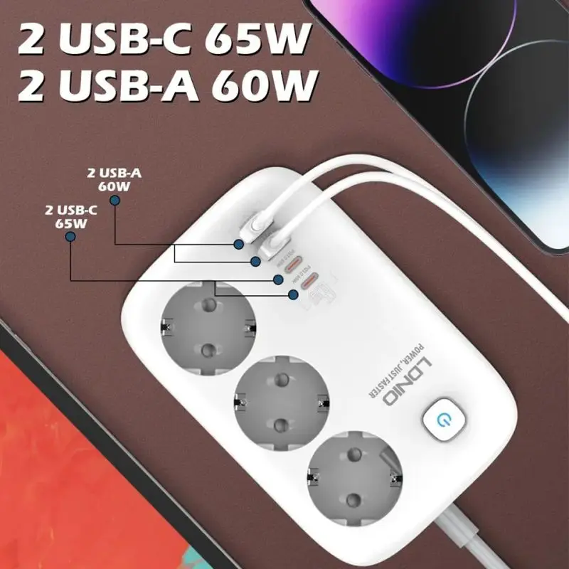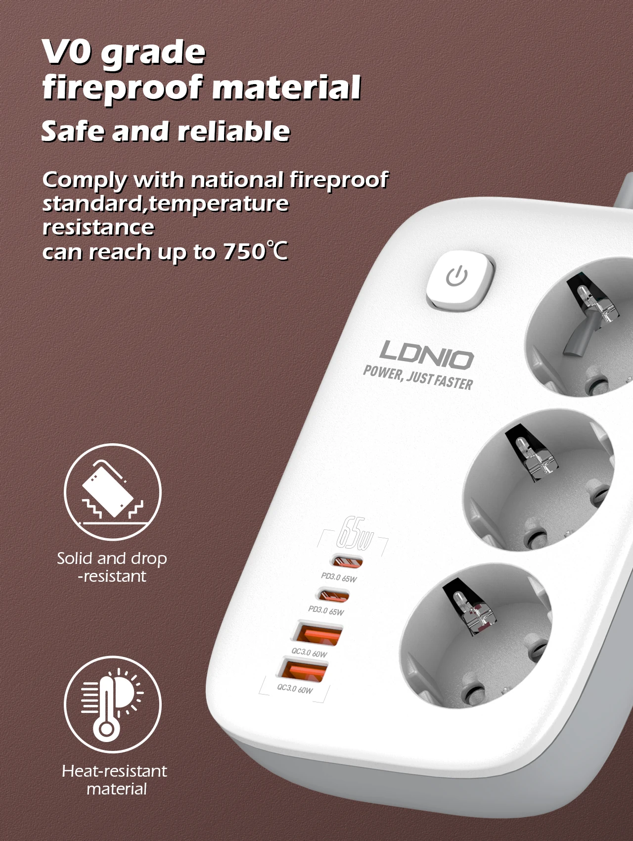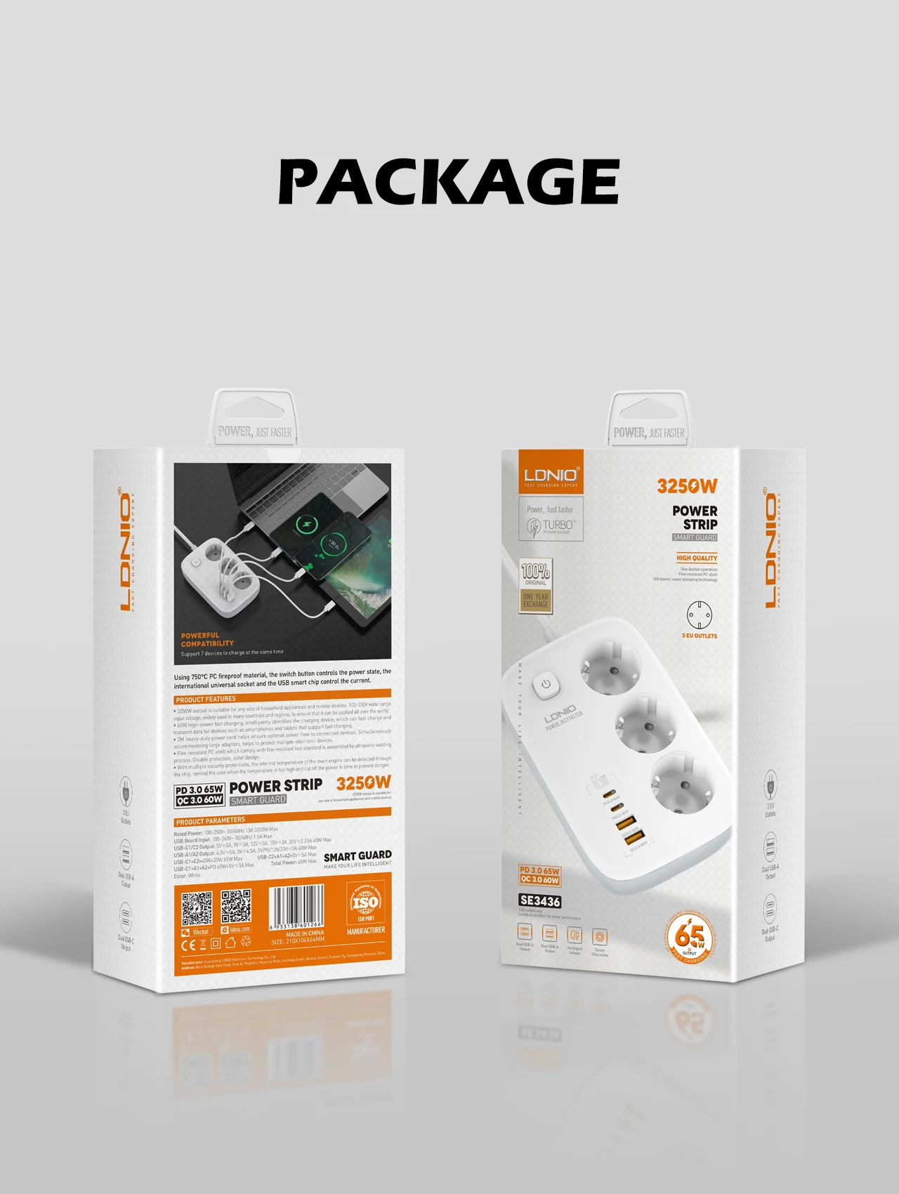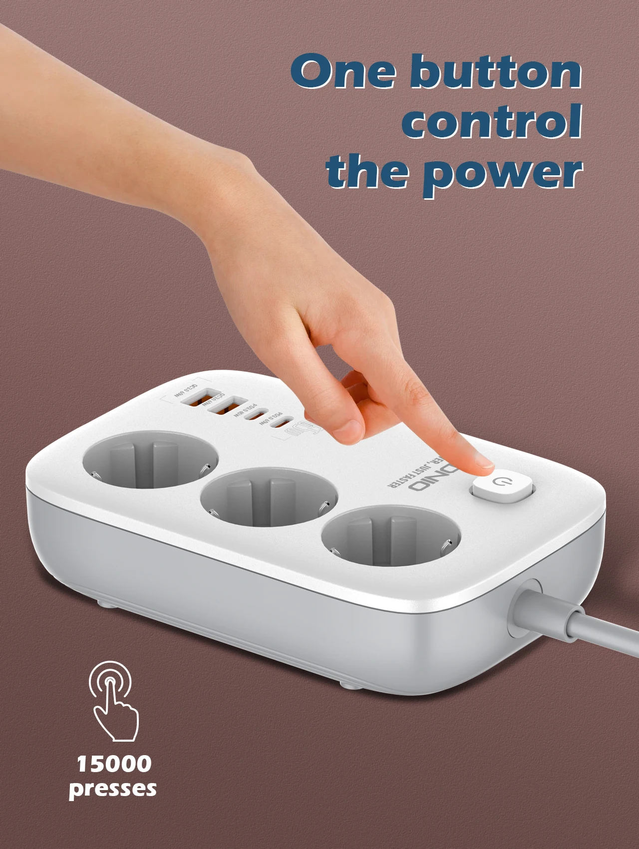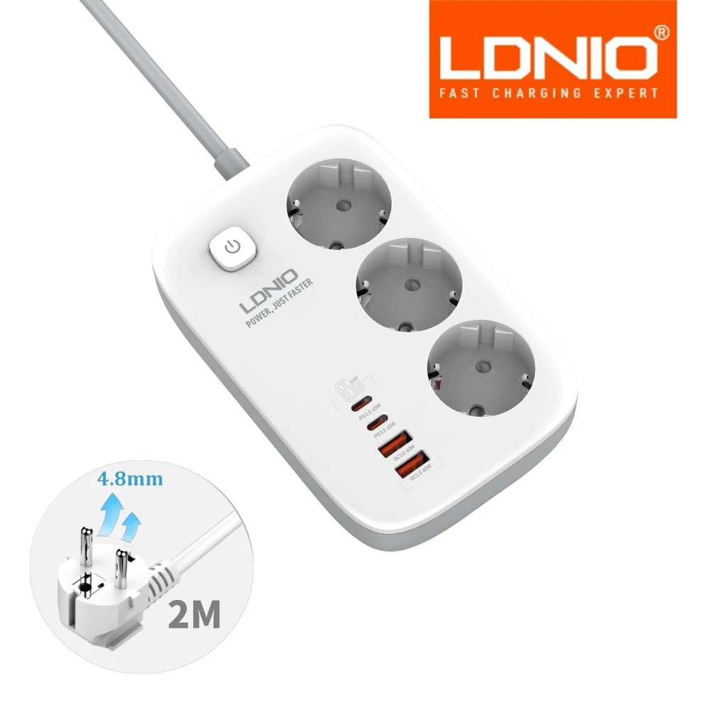 LDNIO EU Plug 3250W Power Strip 2 Meters Extension Cable Network Filter 3 EU standards Outlet So et Adapter Surge tor