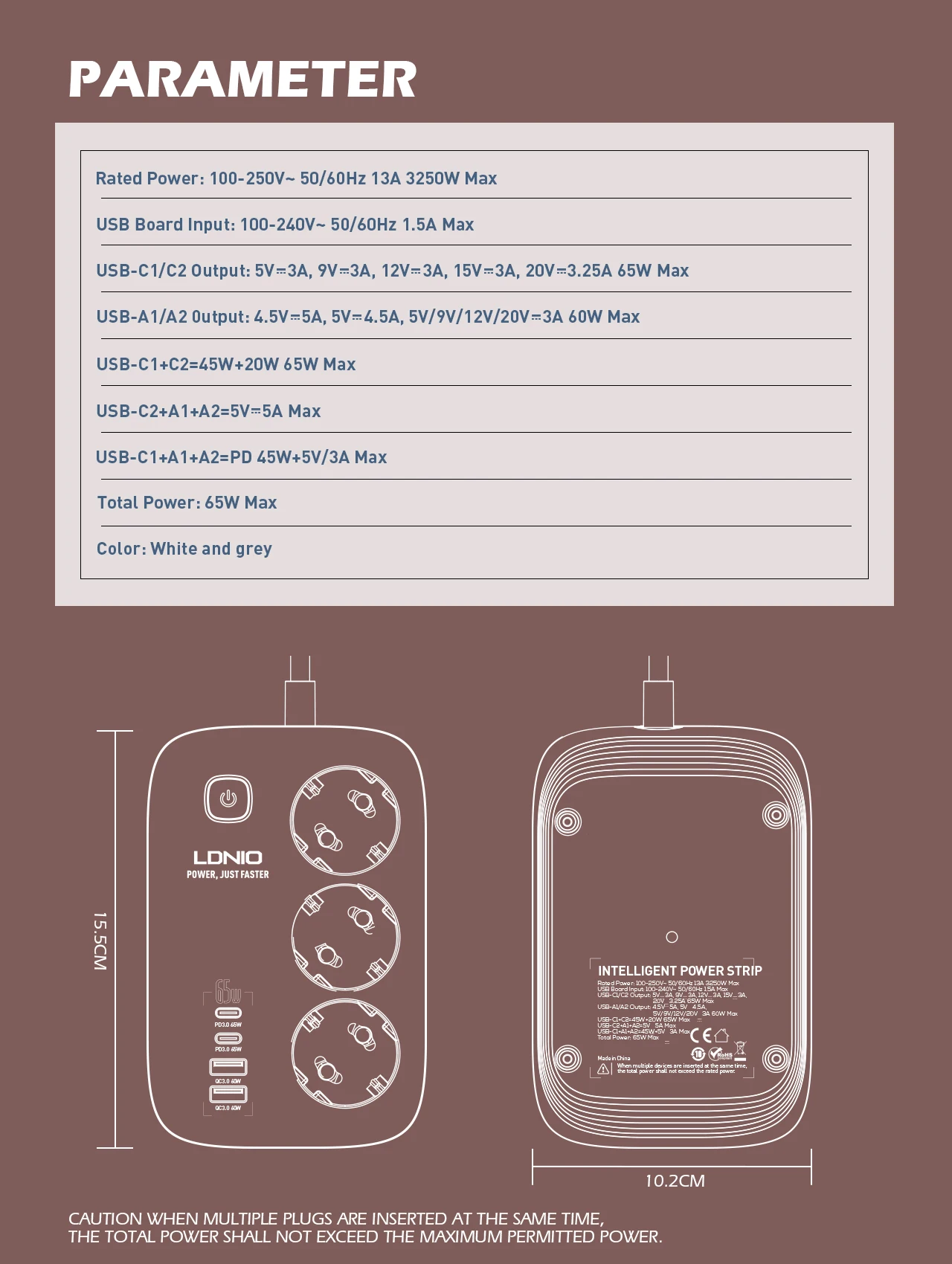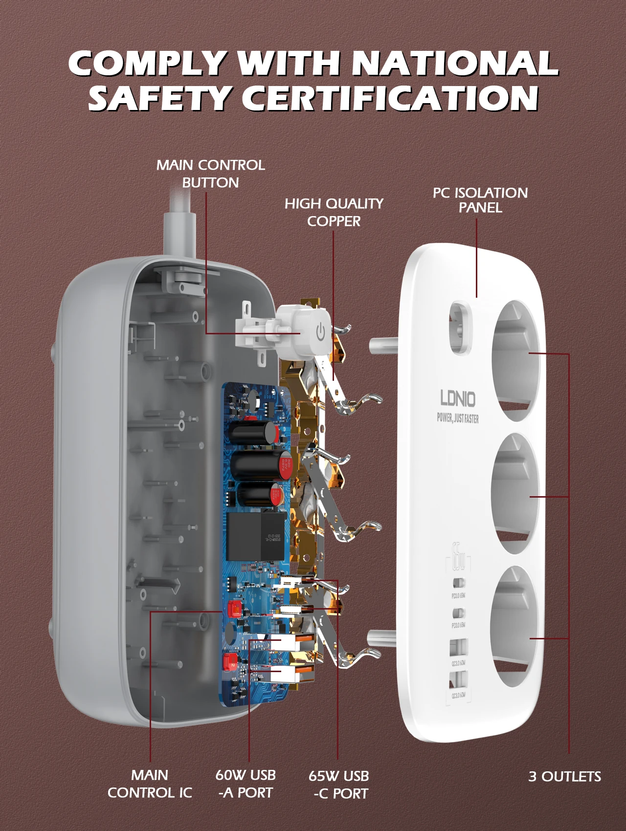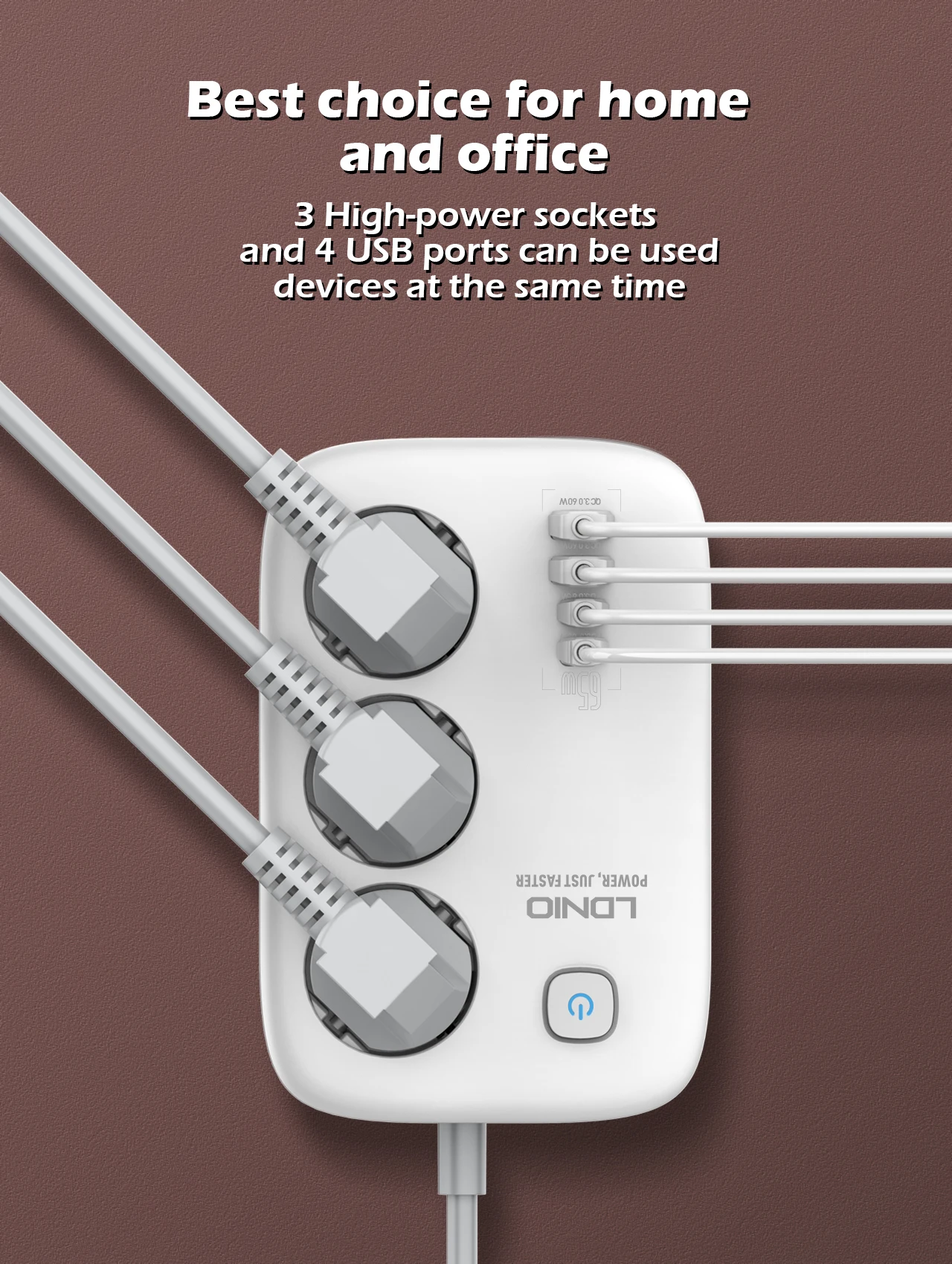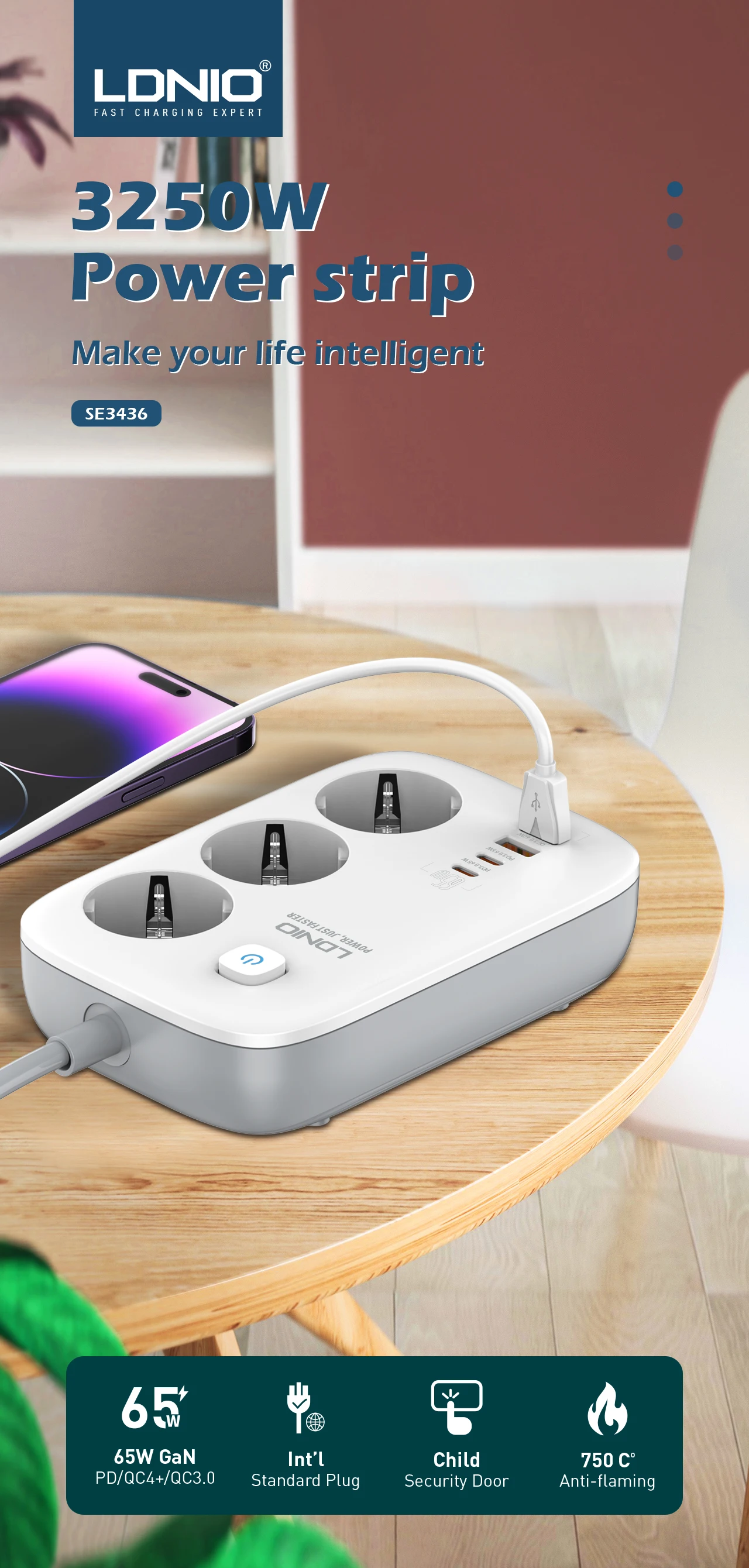 LDNIO EU Plug 3250W Power Strip 2 Meters Extension Cable Network Filter 3 EU standards Outlet So et Adapter Surge tor