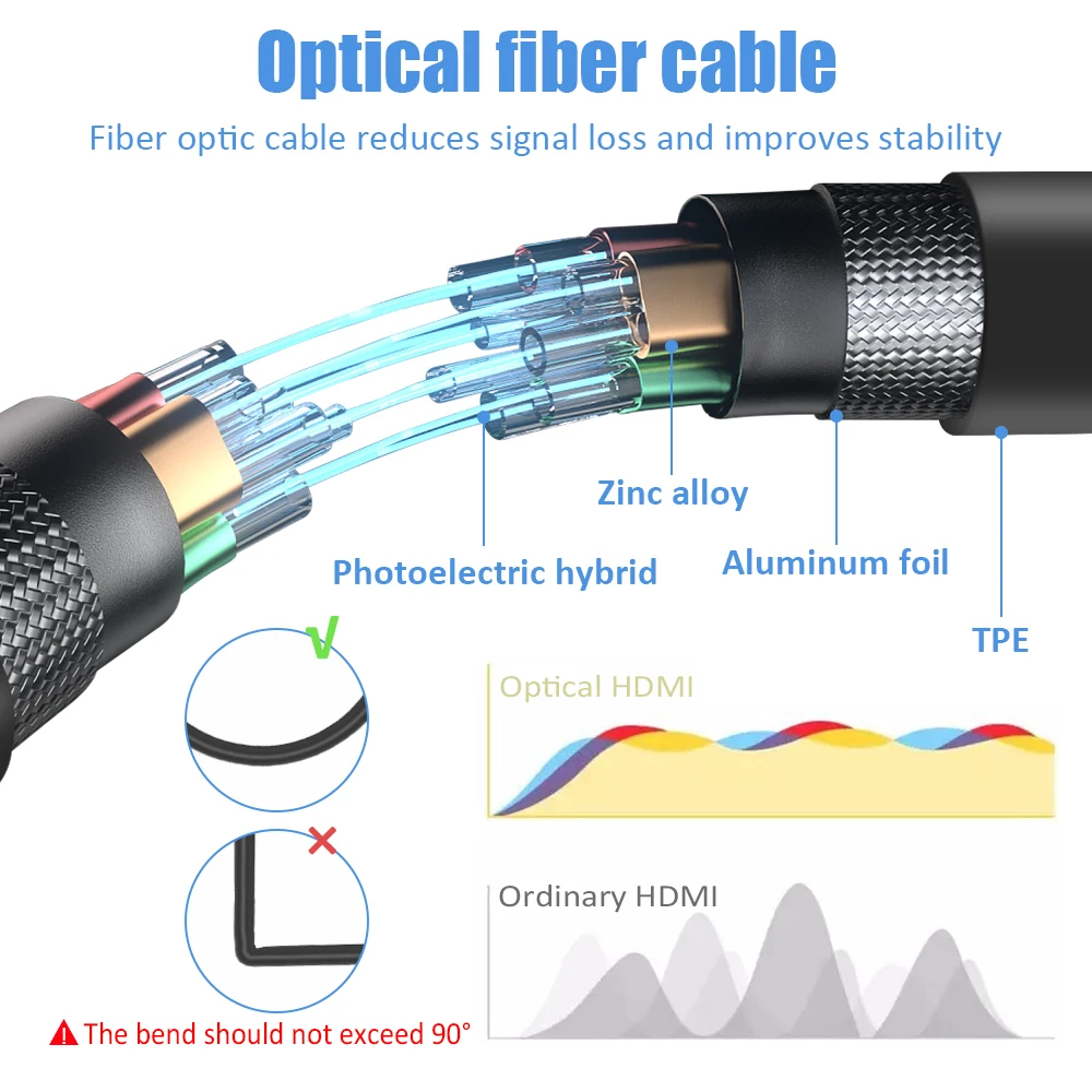3 이 HD 2 1 광섬유 케이블의 전송 속도는 일반적인 HD 구리 케이블보다 높으며 기존 HD 구리 케이블은 장거리에서 4K 60Hz를 전송 없습니다