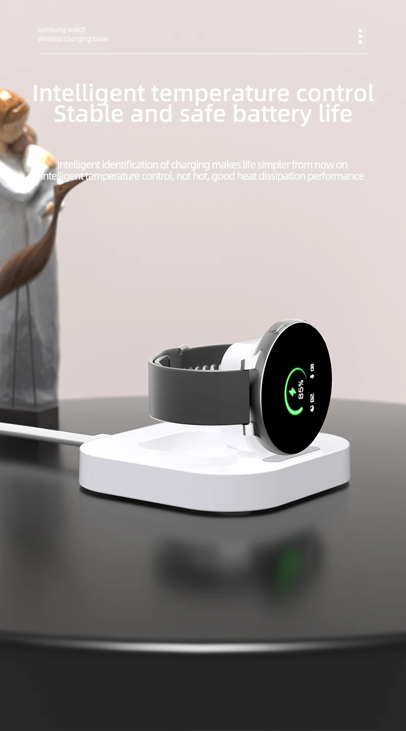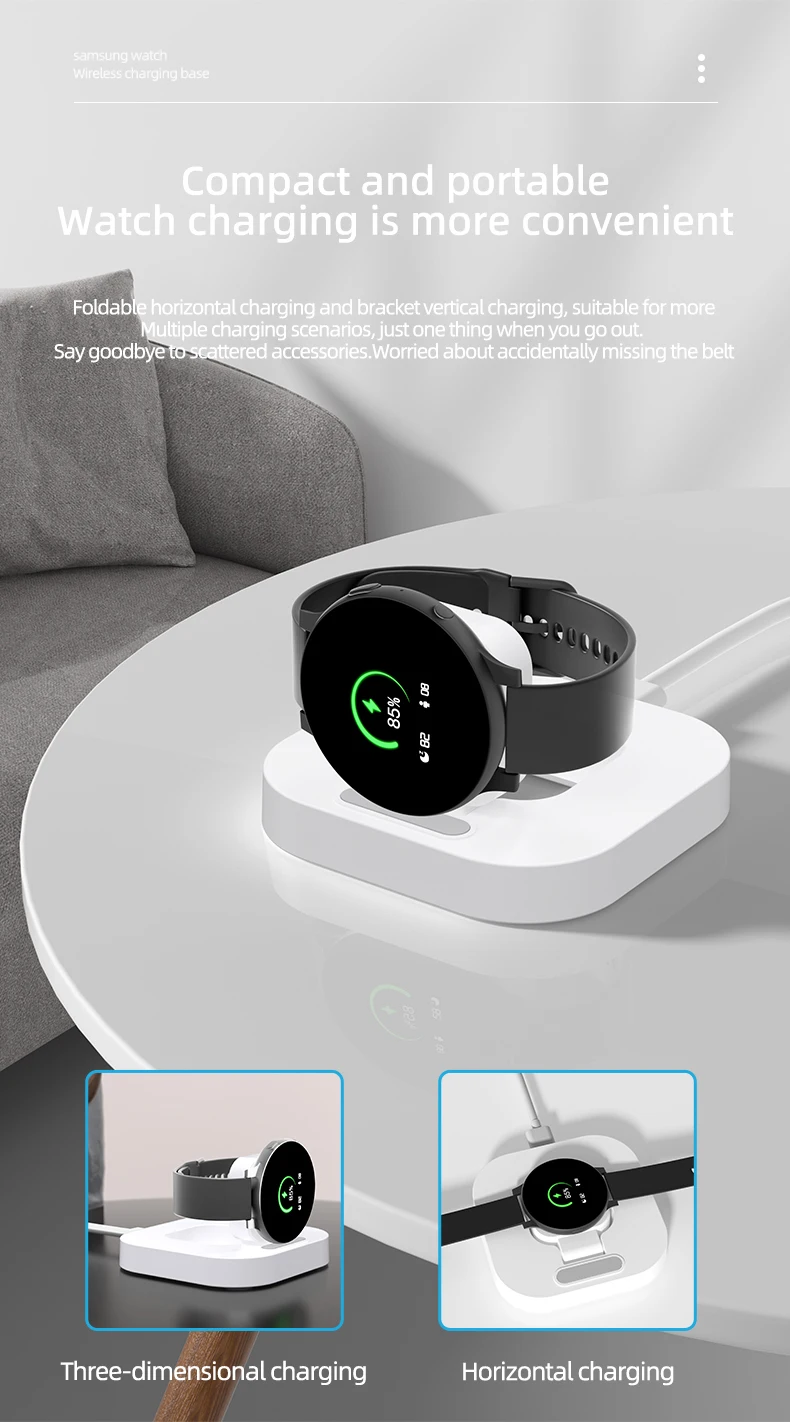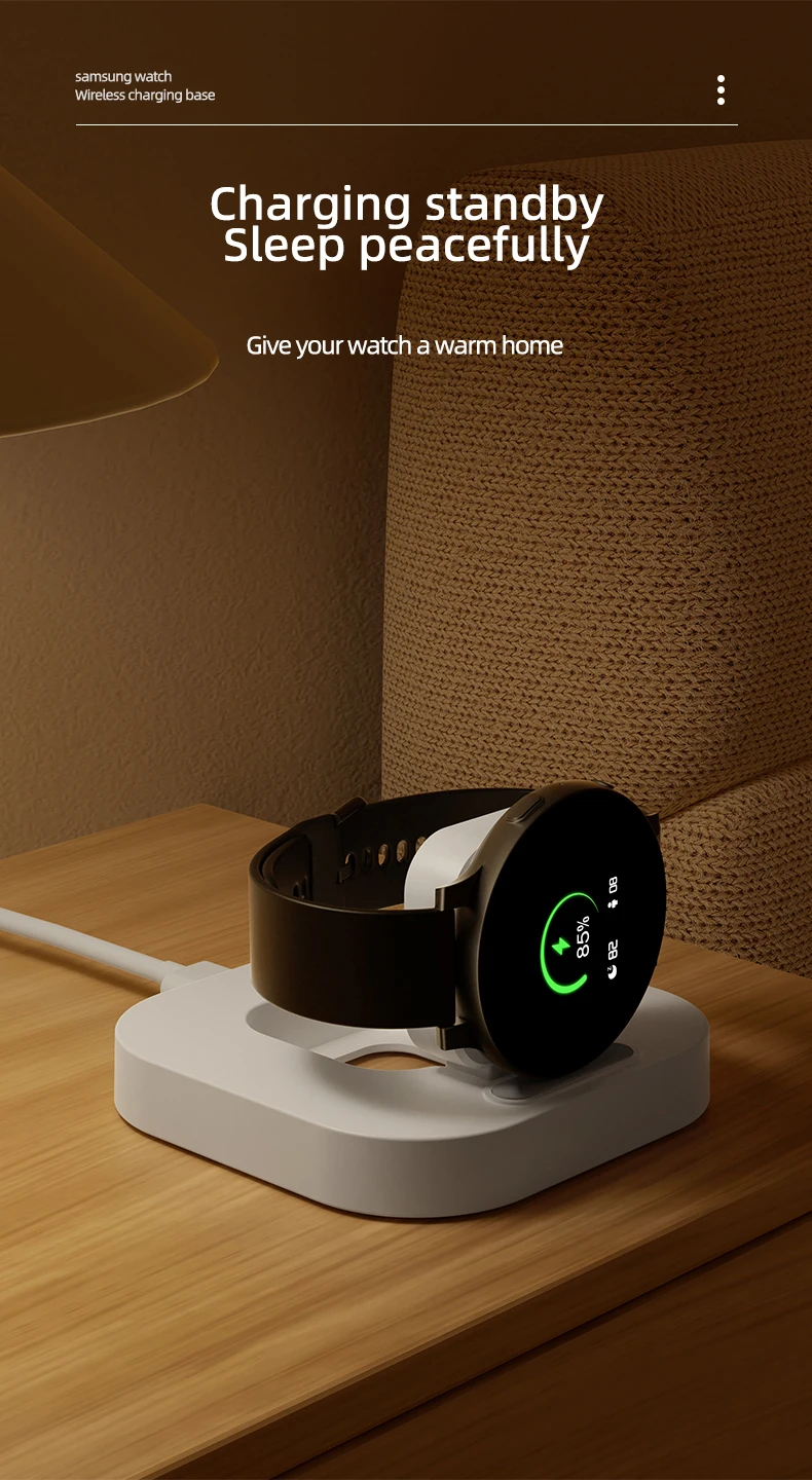 시계용으로 설계됨 조립이 필요하지 않습니다 강력한 자기 무선 충전기가 내장된 시계용 충전 스탠드입니다 시계를 에 연결하기만 하면 모든 이 완료됩니다 워치 6/5/5 /4/4Classic/3 Active 2/1 기어 S4 기어 S3 기어 S2와 호환 가능